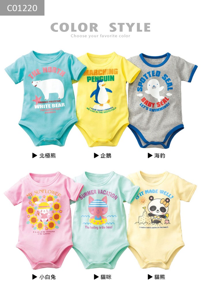 6色動物肩扣短袖包屁衣【01220】貝比幸福小舖