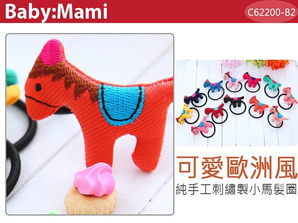 可愛歐洲風純手工刺繡製小馬髮圈/髮束/髮飾【62200-B2】貝比幸福小舖