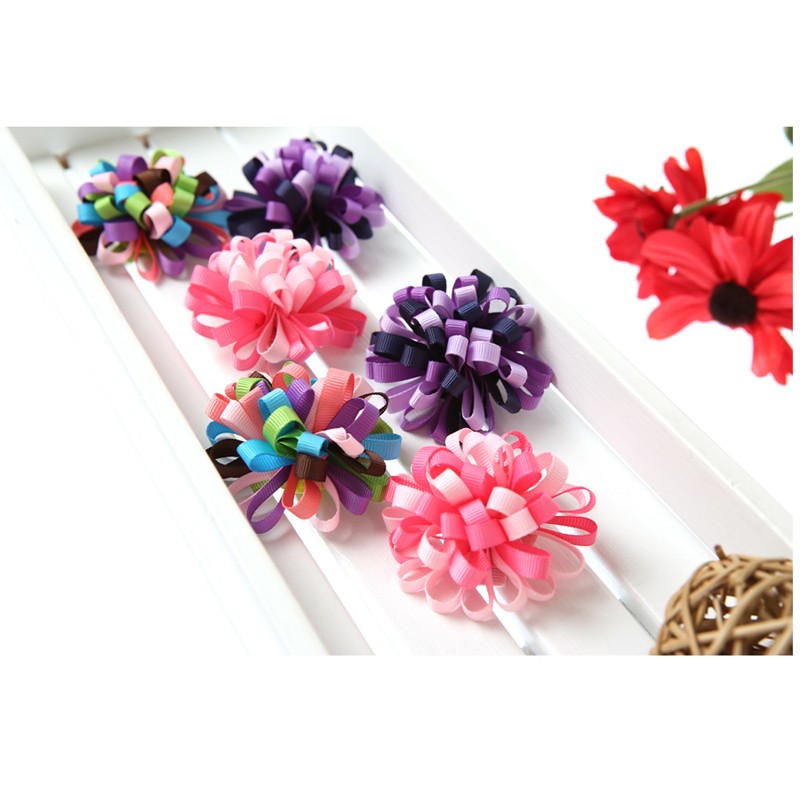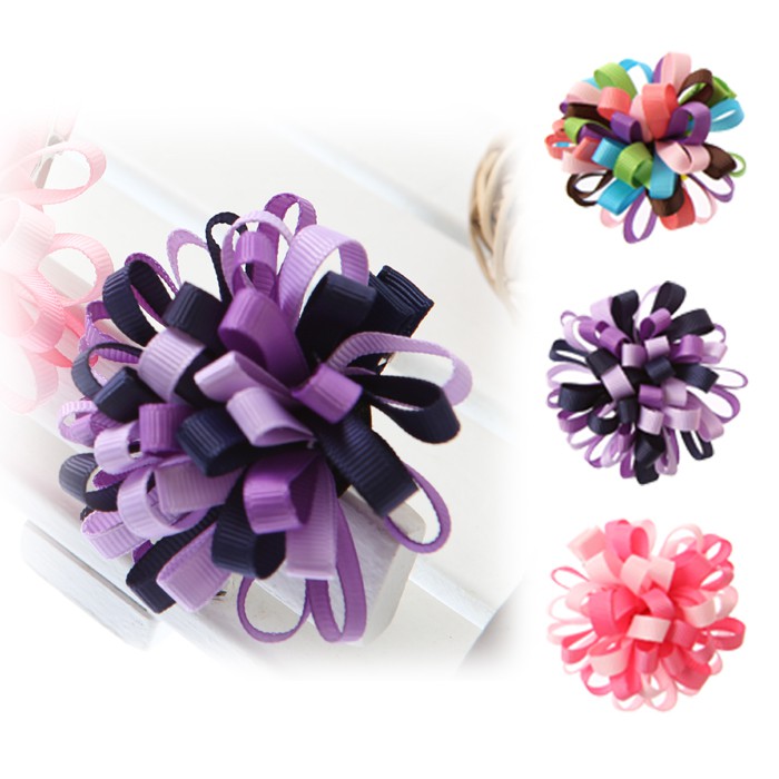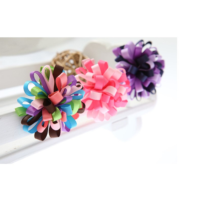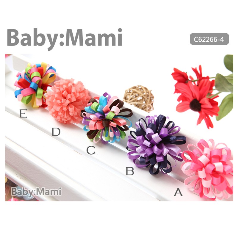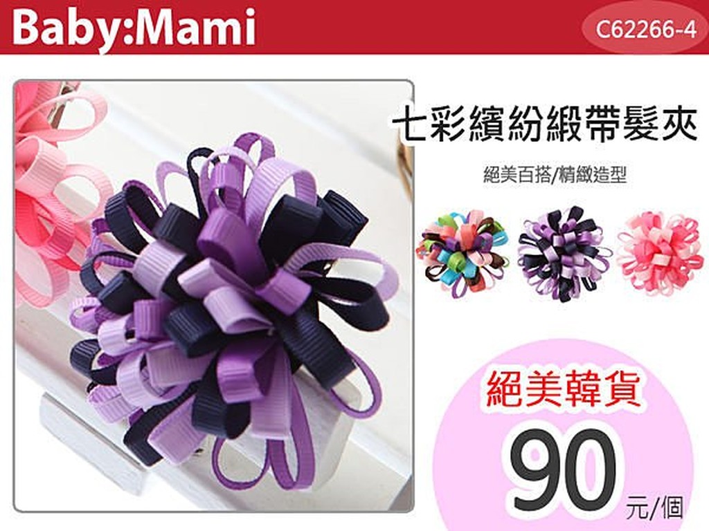 夢幻七彩繽紛緞帶花朵造型髮夾 【62266-4】貝比幸福小舖