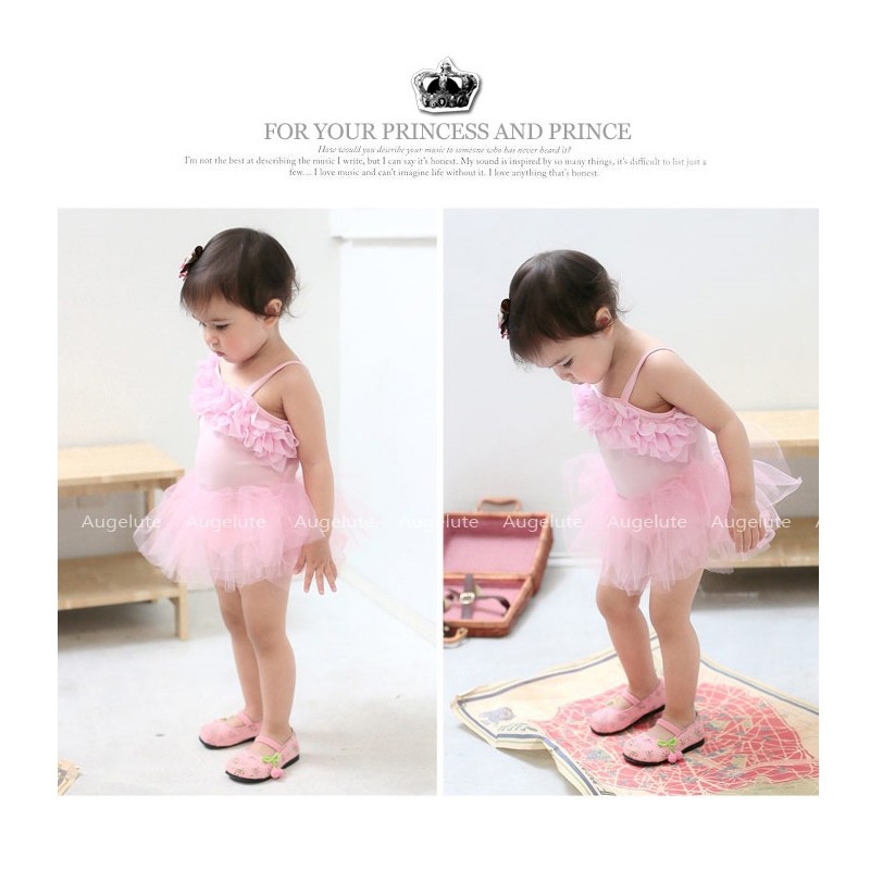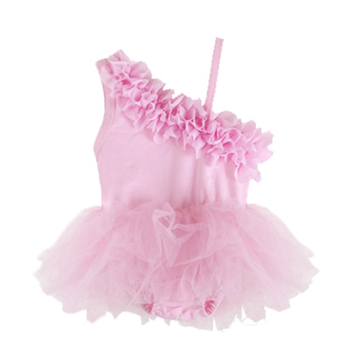 優美芭蕾小公主粉紅蕾絲斜肩包屁裙/紗紗裙/蓬蓬紗裙【01699-5】貝比幸福小舖