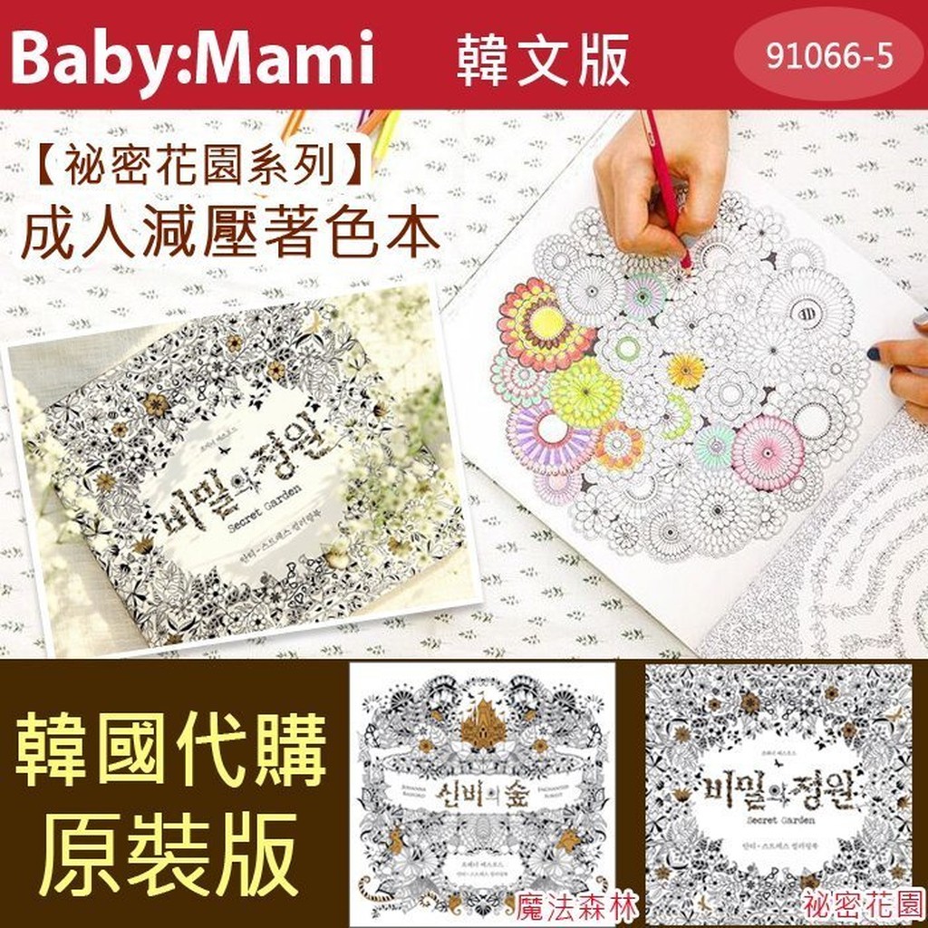 韓文版祕密花園/魔法森林成人減壓著色繪本 手繪本【91066-5】貝比幸福小舖