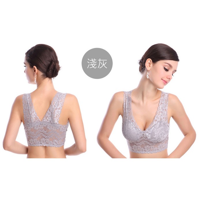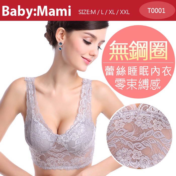 無鋼圈蕾絲睡眠內衣-淺灰【T0001】貝比幸福小舖
