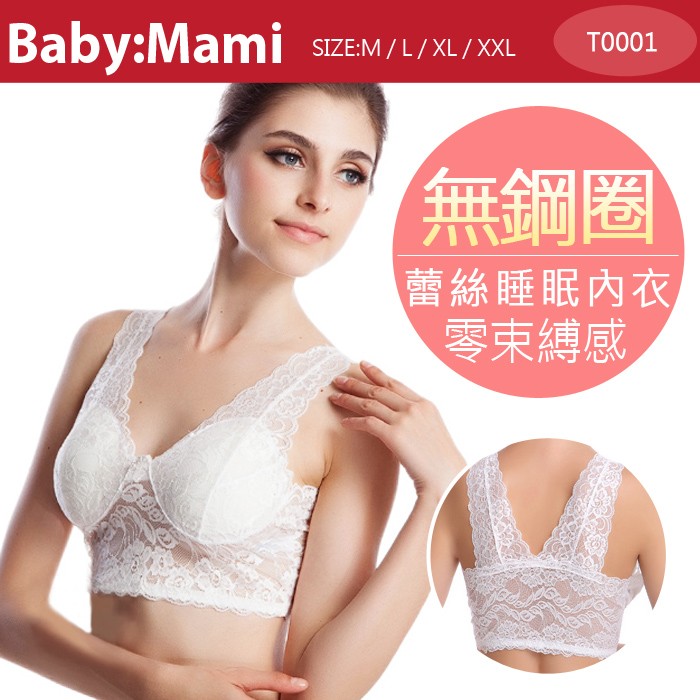 無鋼圈蕾絲睡眠內衣-靚白【T0001】貝比幸福小舖