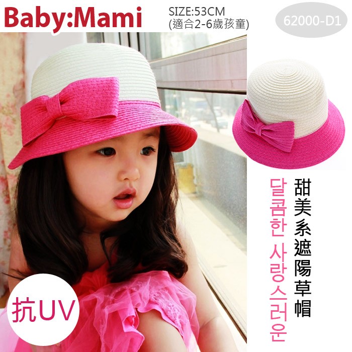 韓系甜美公主蝴蝶結遮陽草帽/抗uv漁夫帽【62000-D1】貝比幸福小舖