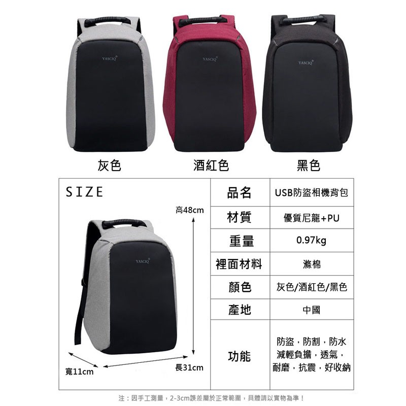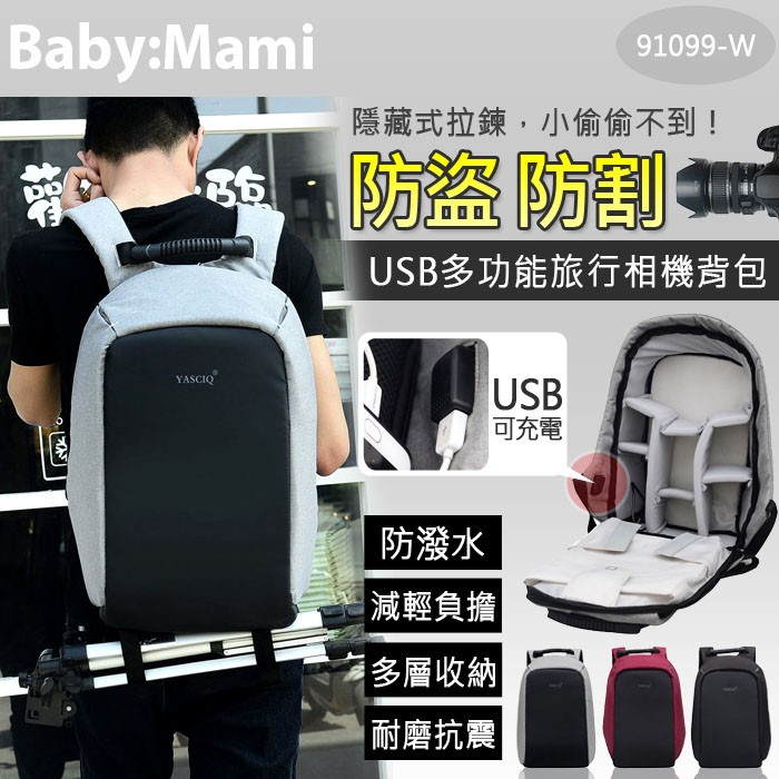 「99破盤」USB可充電多功能防盜防割旅行相機背包 防潑水包【91099-W】