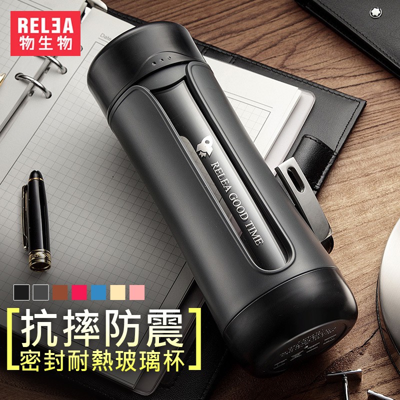[RELEA物生物]抗摔防震雙層密封耐熱420ML玻璃杯/濾茶隨手杯