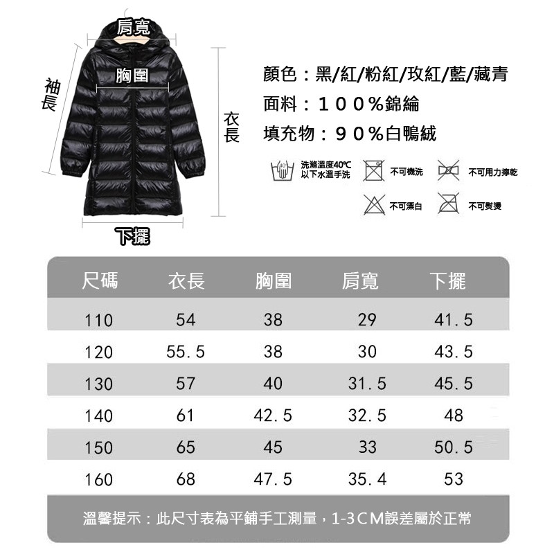 專櫃級超輕量輕羽絨兒童長版外套(90%羽絨)