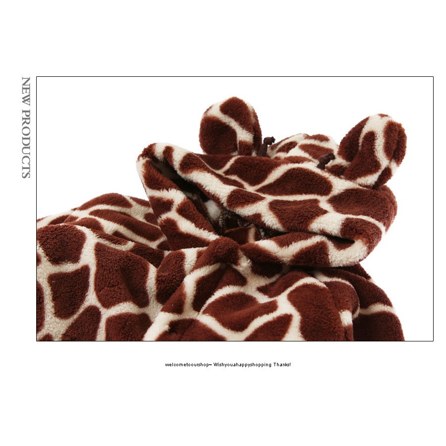 超保暖珊瑚絨動物紋可愛連身衣-長頸鹿/斑馬/金錢豹/雲豹【04188-A】貝比幸福小舖