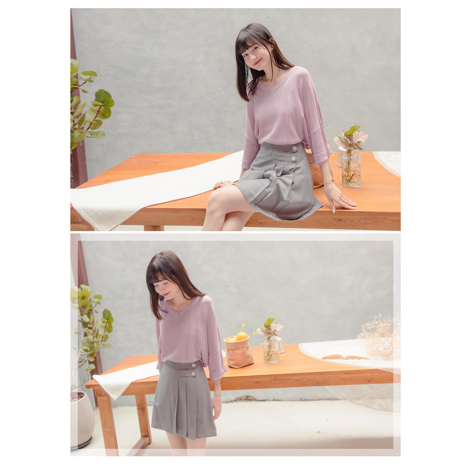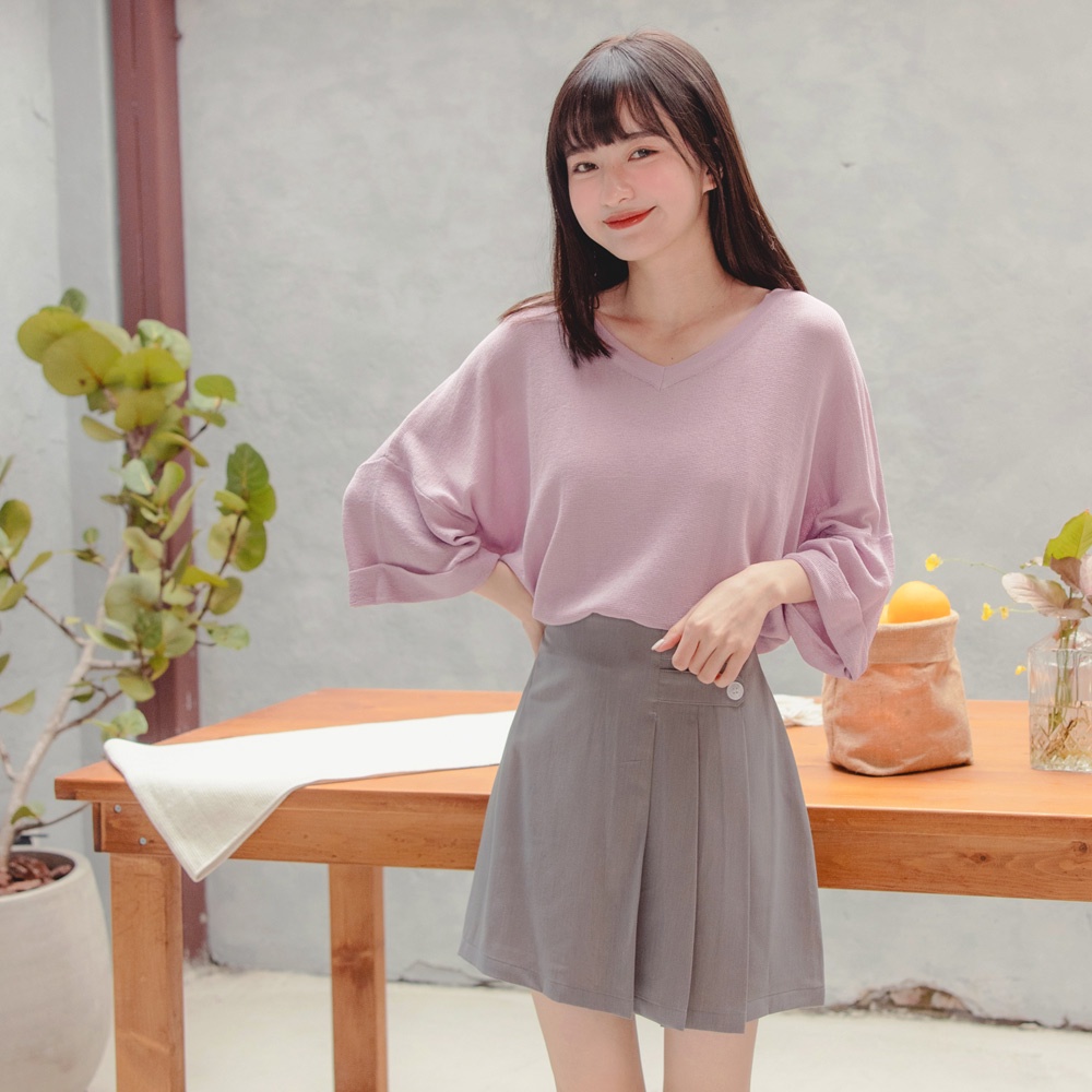 OB嚴選 輕薄V領反摺袖寬版細針織上衣 《FA1673》全館現貨大尺碼/女裝/現貨