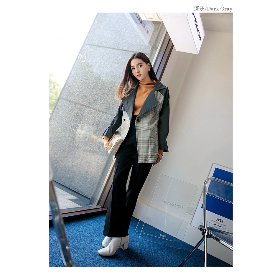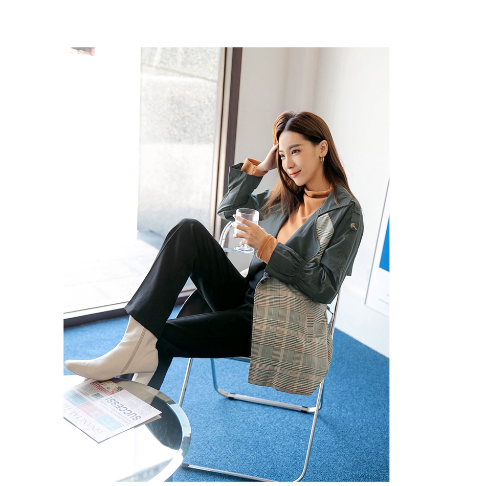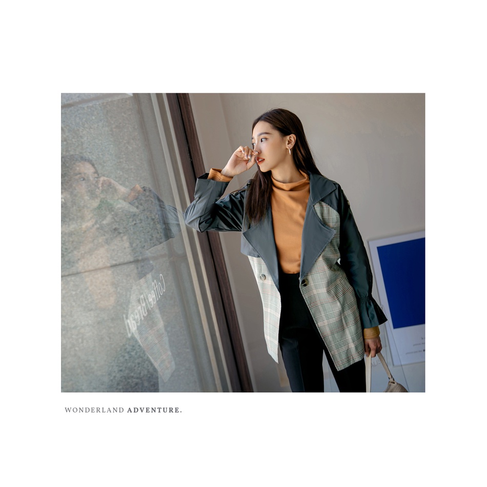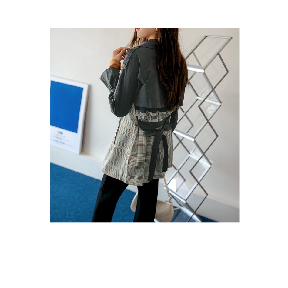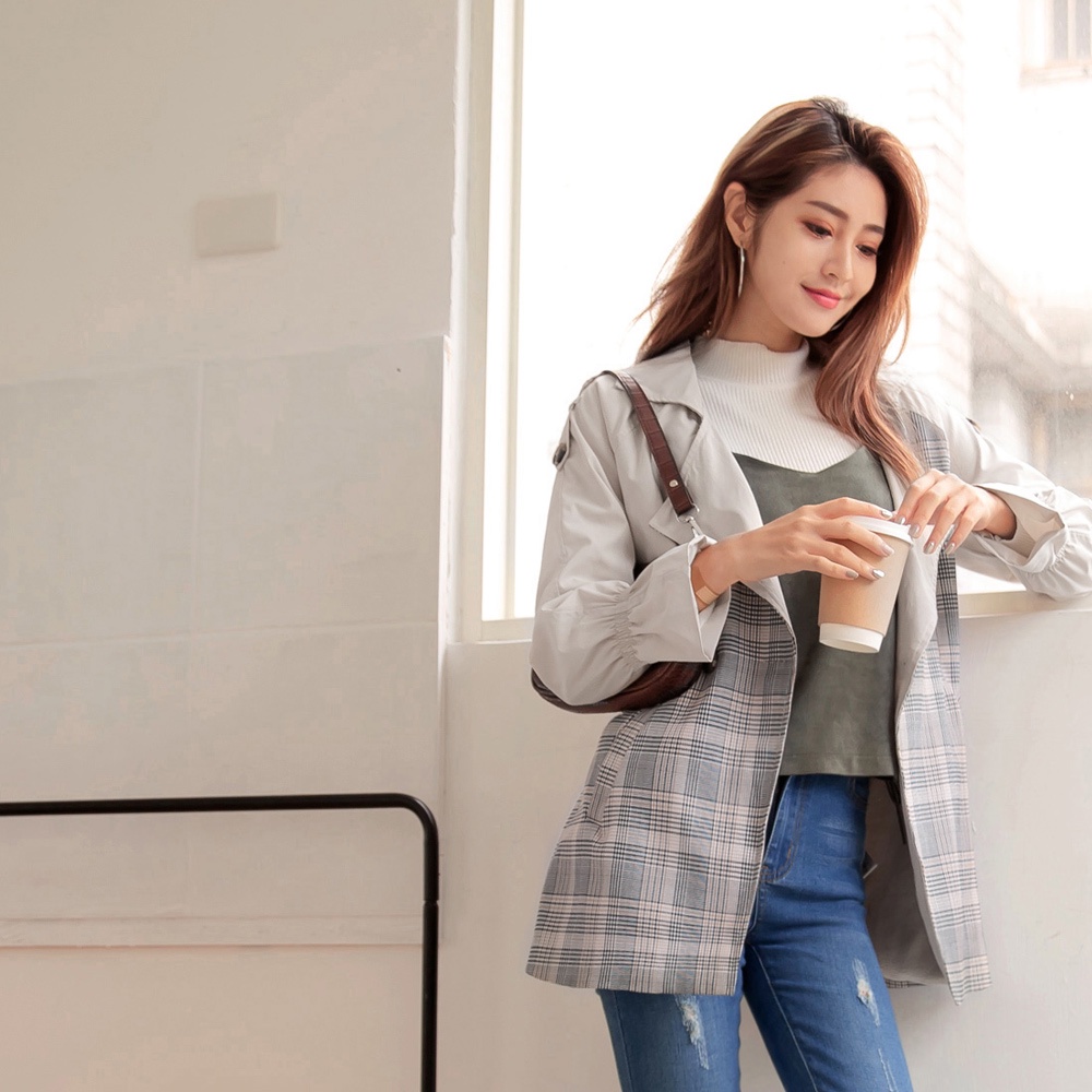 OB嚴選 保暖拼接配色格紋綁帶絨毛內裡長袖風衣外套 《EA3086》大尺碼/女裝/現貨