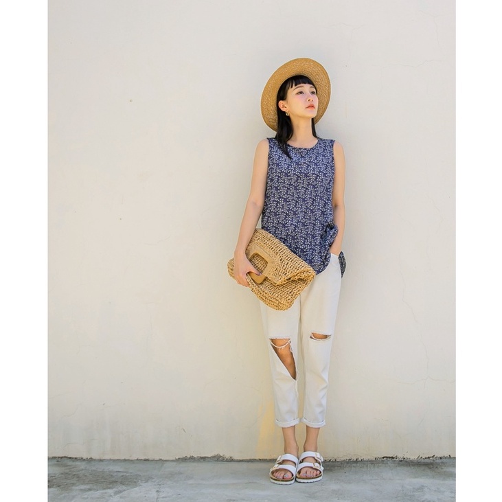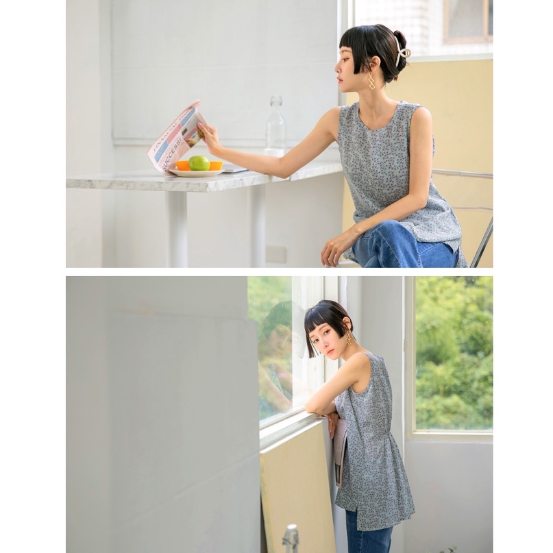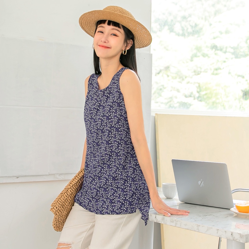 OB嚴選 長版滿版碎花排釦收腰無袖背心上衣 《AB15780》全館現貨大尺碼/女裝/現貨