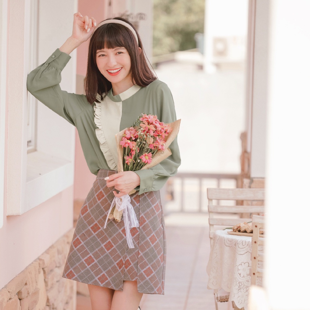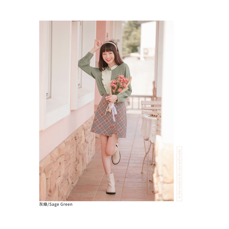 OB嚴選 不易皺荷葉造型拼接微立領上衣 《AB16400》全館現貨大尺碼/女裝/現貨