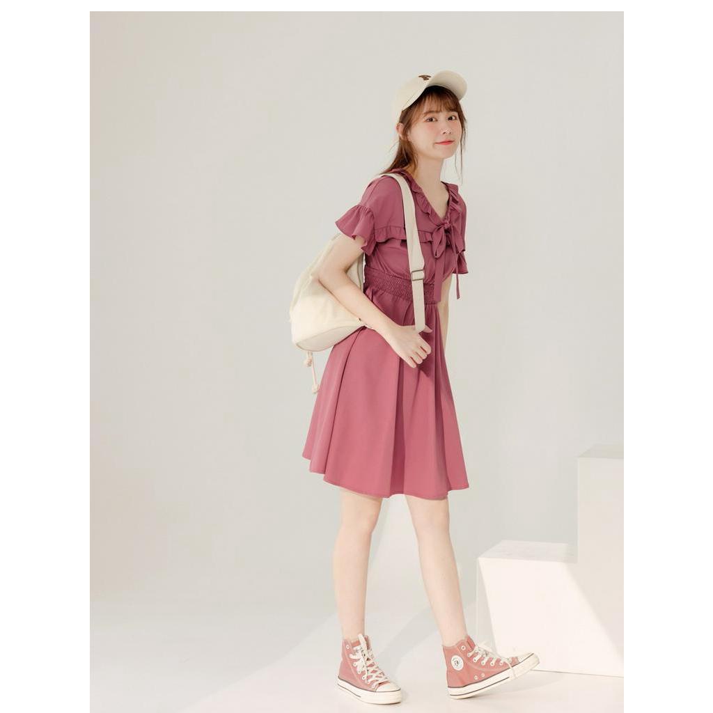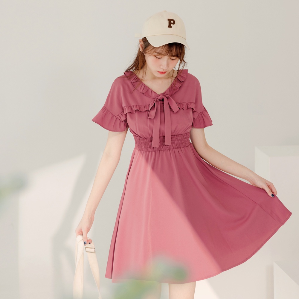 OB嚴選 小V臉.V領不易皺荷葉領收腰洋裝 《DA9178》大尺碼/女裝/現貨