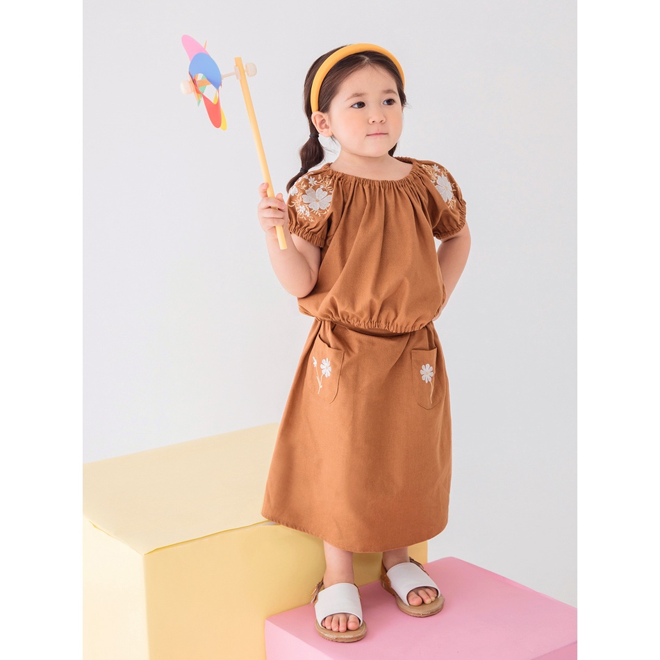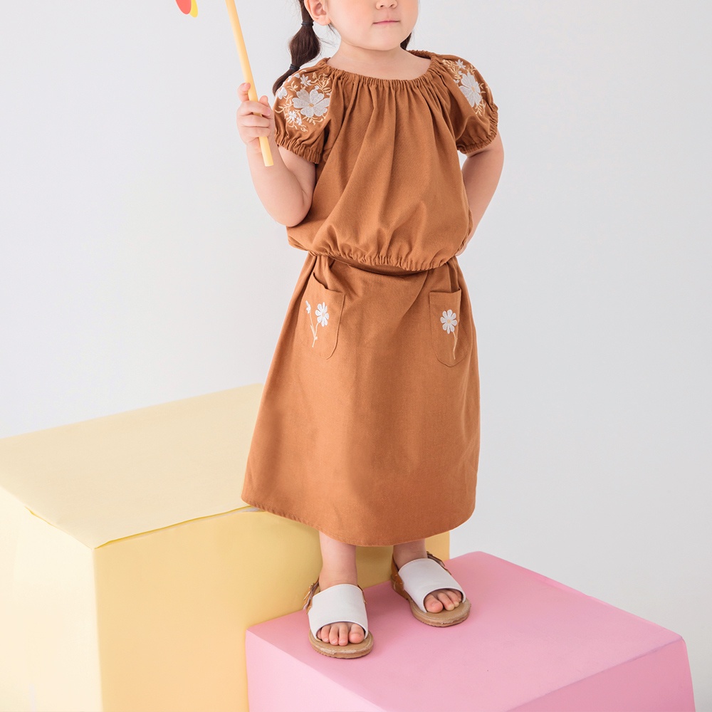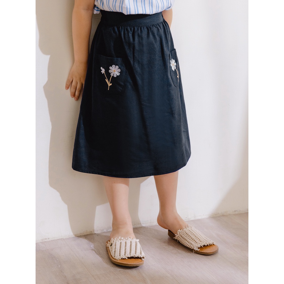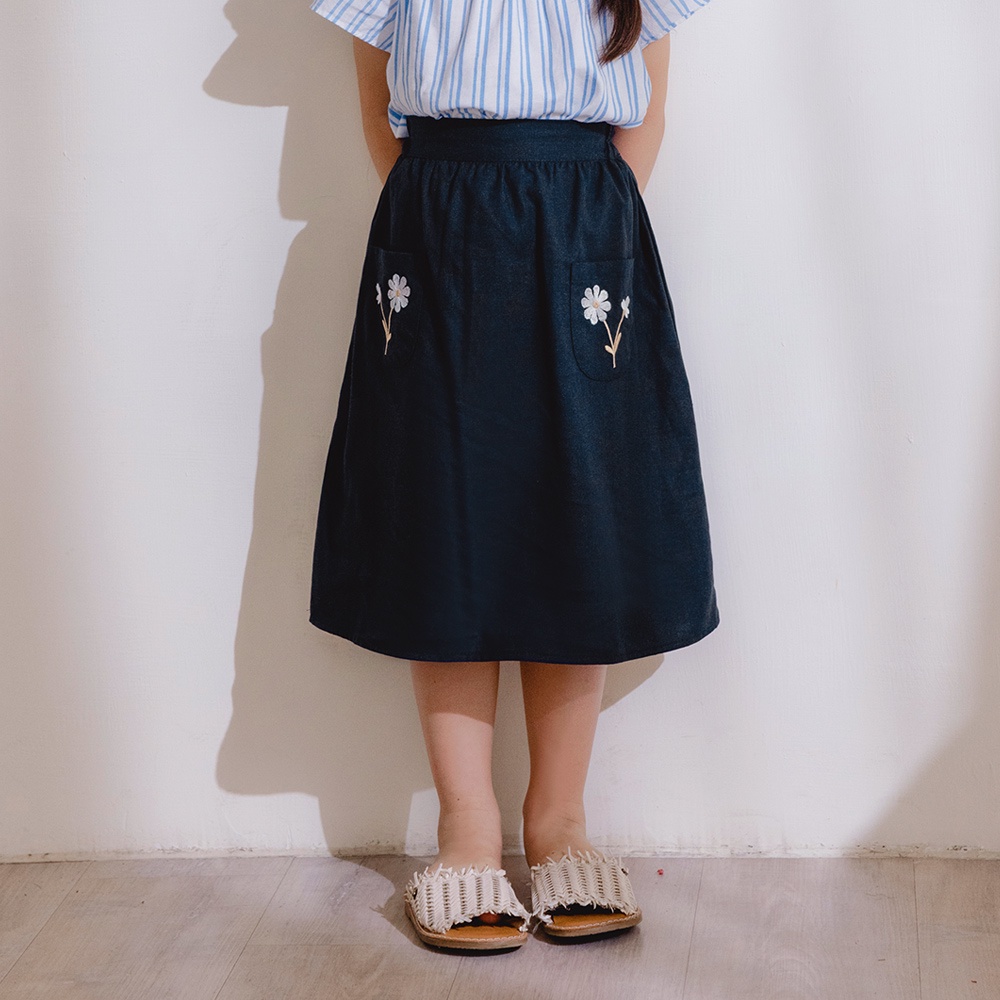 OB嚴選 涼爽棉麻繡花口袋後鬆緊腰中長裙(親子裝) 《QA1419》童裝/現貨