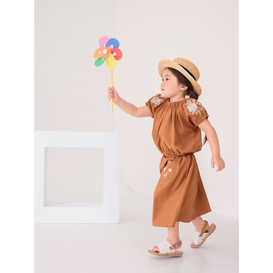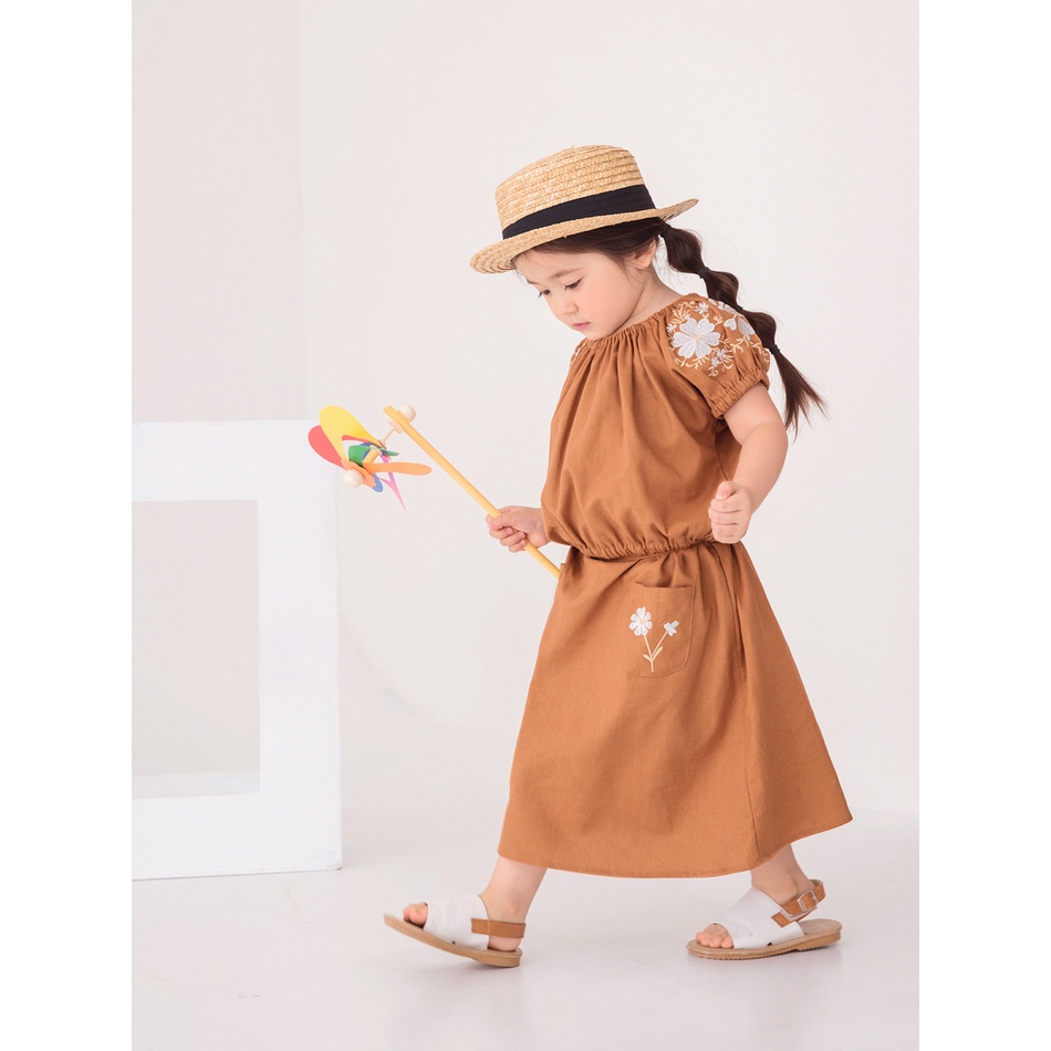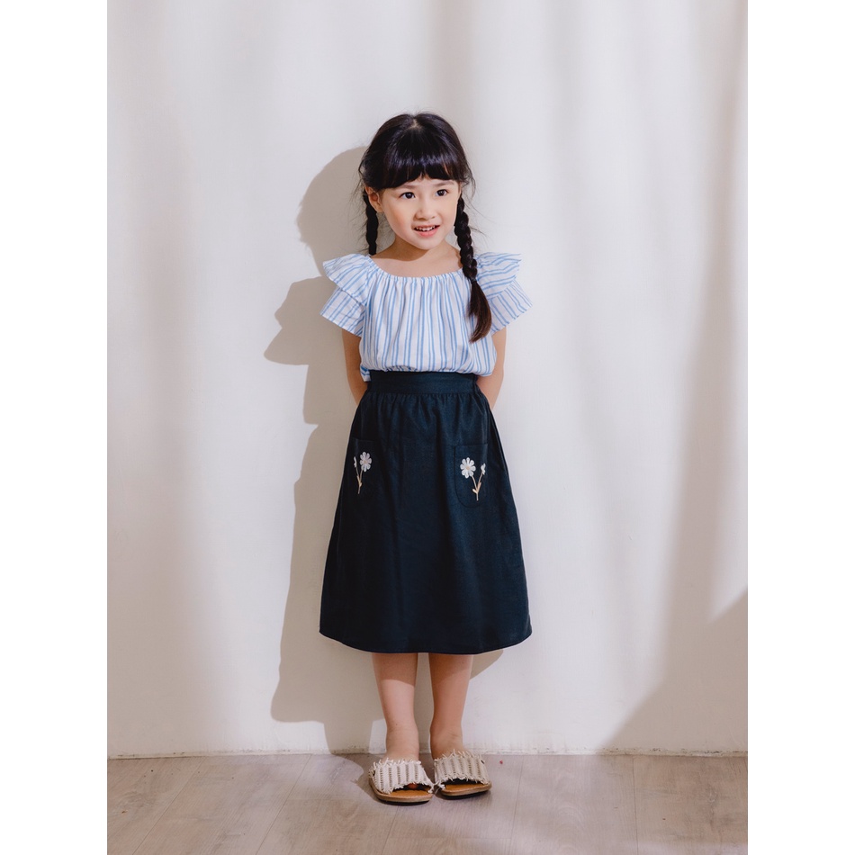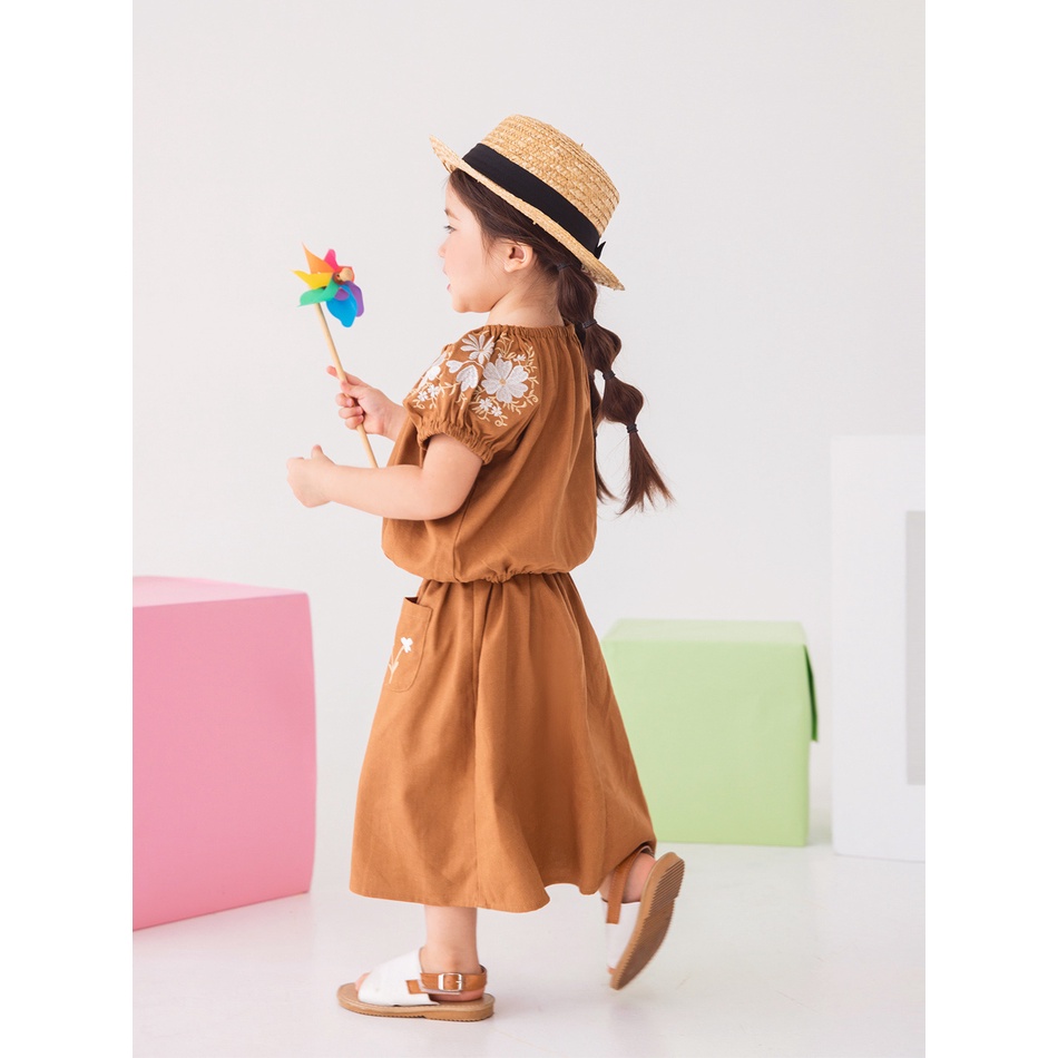 OB嚴選 涼爽棉麻繡花口袋後鬆緊腰中長裙(親子裝) 《QA1419》童裝/現貨