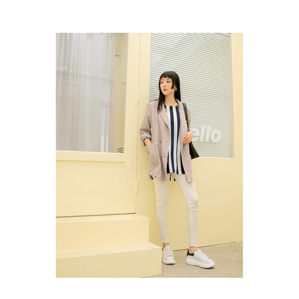 OB嚴選 長版圓領滿版直條紋口袋短袖上衣 《AB15454》全館現貨大尺碼/女裝/現貨