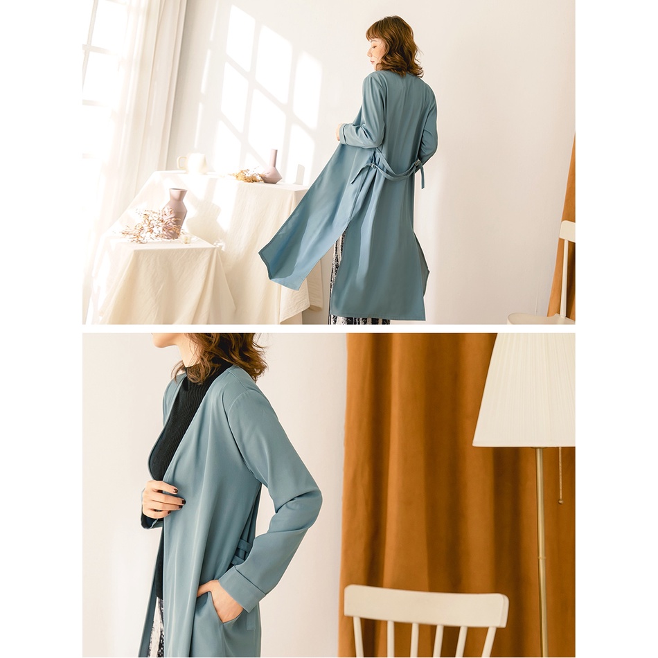 OB嚴選 不易皺後腰帶側開衩長版罩衫 《EA3198》全館現貨大尺碼/女裝/現貨