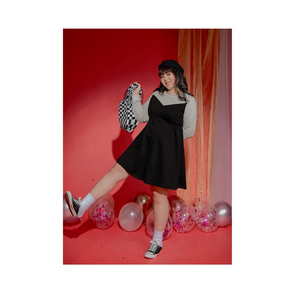 OB嚴選 假兩件拼接收腰傘襬洋裝/連衣裙-雲朵自訂款 《DA9079》全館現貨大尺碼/女裝/現貨