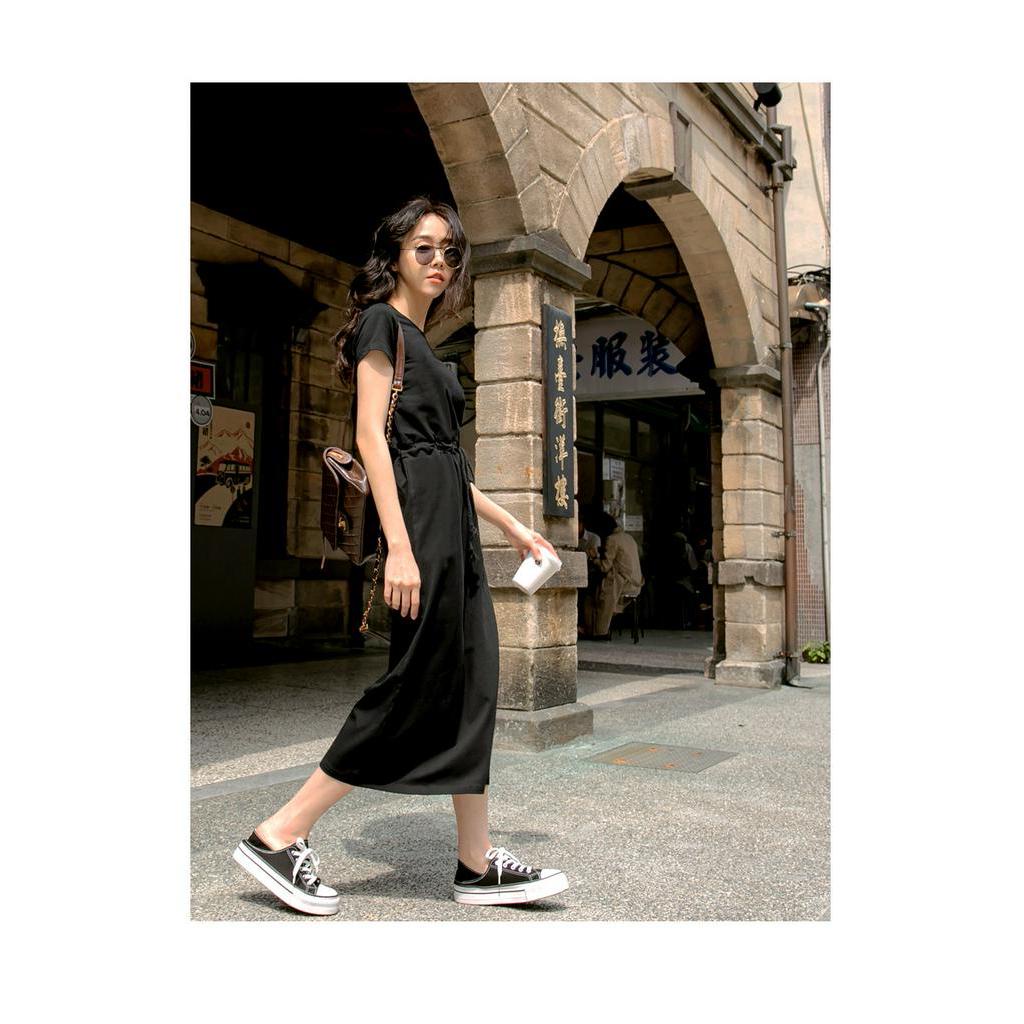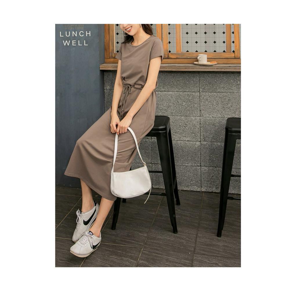 OB嚴選 純色高含棉休閒收腰綁帶短袖洋裝 《DA8574》大尺碼/女裝/現貨