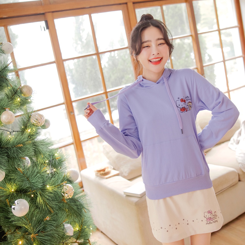 OB嚴選 KITTY聖誕系列~純棉袋鼠口袋連帽抽繩胸前印圖上衣 《KB1147》全館現貨大尺碼/女裝/現貨