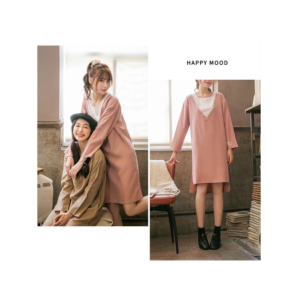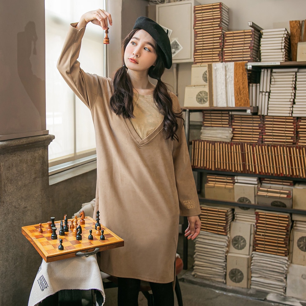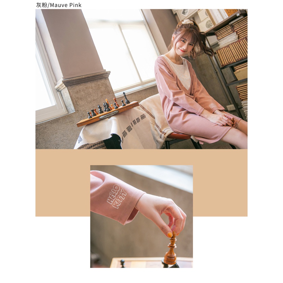 OB嚴選 學院KITTY.假兩件V領印圖洋裝 《KB1285》全館現貨大尺碼/女裝/現貨