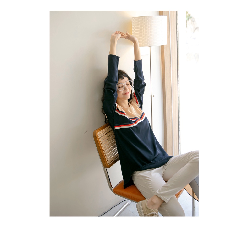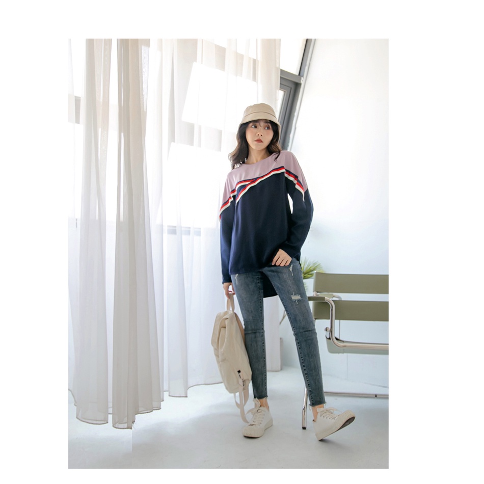 OB嚴選 長版撞色織帶拼接長袖上衣 《AB16499》全館現貨大尺碼/女裝/現貨