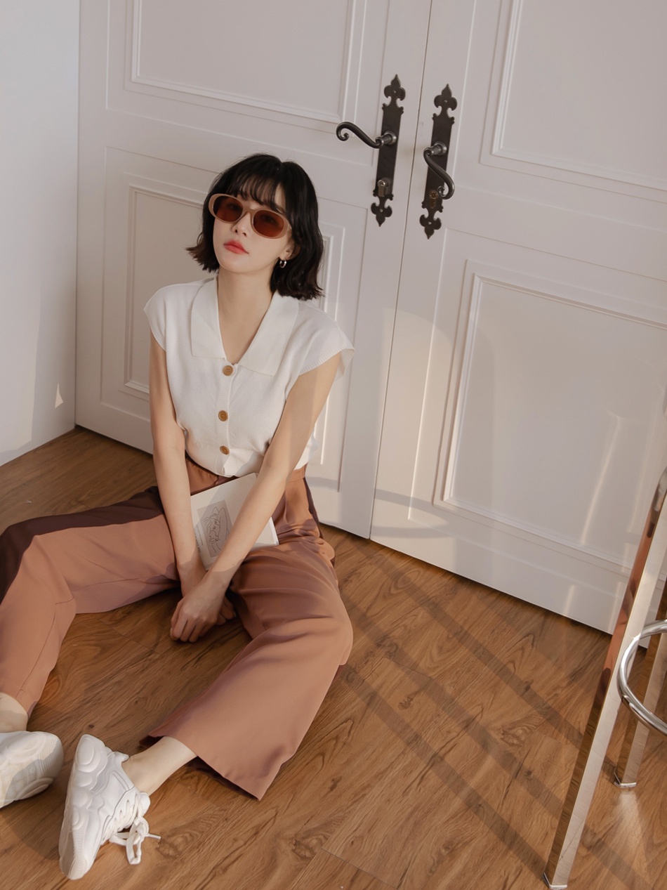 OB嚴選 設計感撞色拼接後鬆緊闊腿落地褲 《BA6669》大尺碼/女裝/現貨