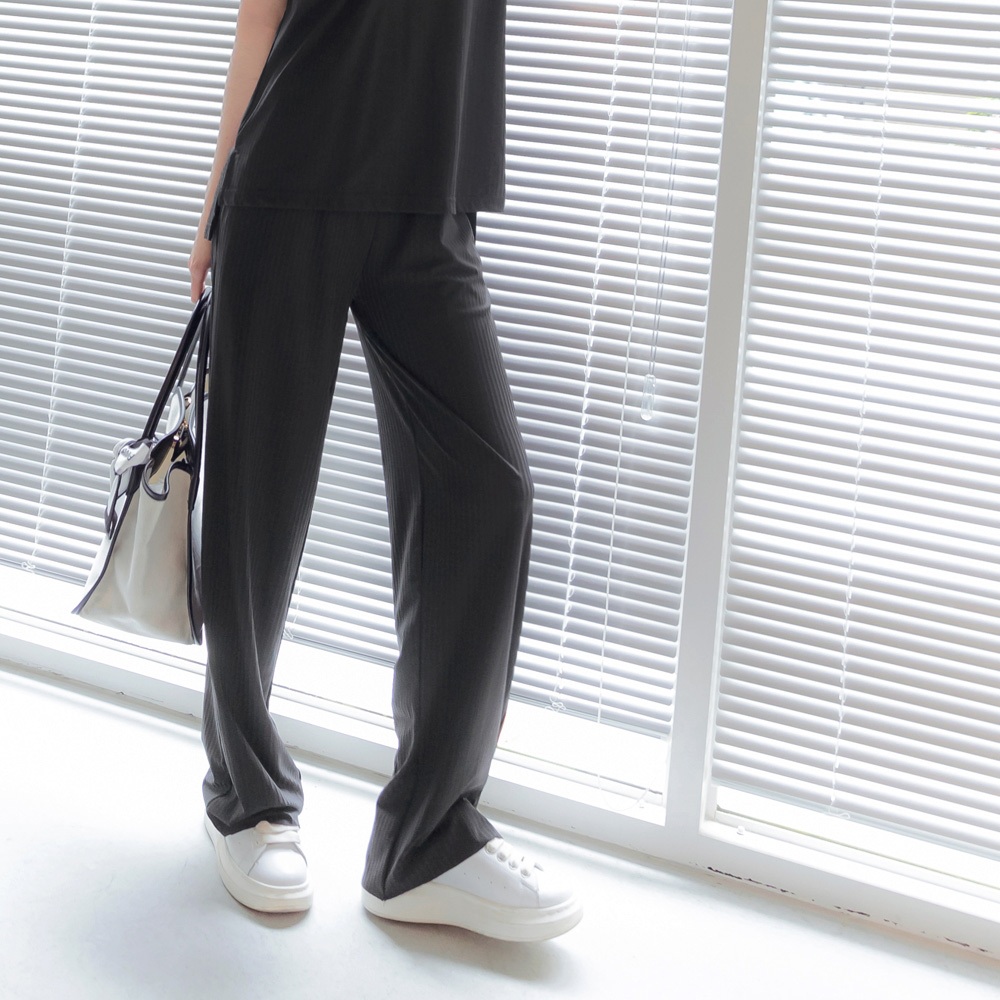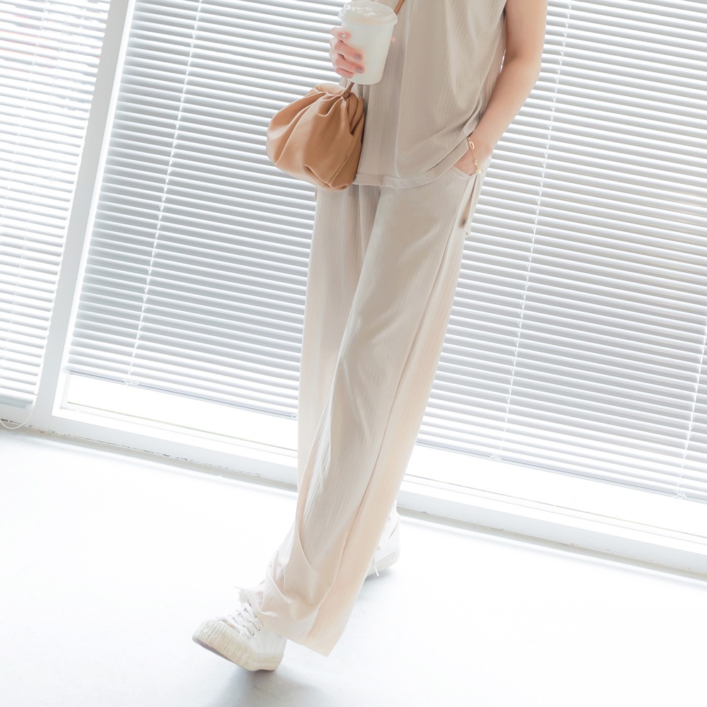 OB嚴選 涼爽坑條腰鬆緊落地闊腿褲 《BA6611》大尺碼/女裝/現貨