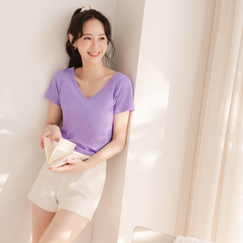 OB嚴選 小V臉.V領高含棉後蕾絲拼接上衣 《AB17071》大尺碼/女裝/現貨