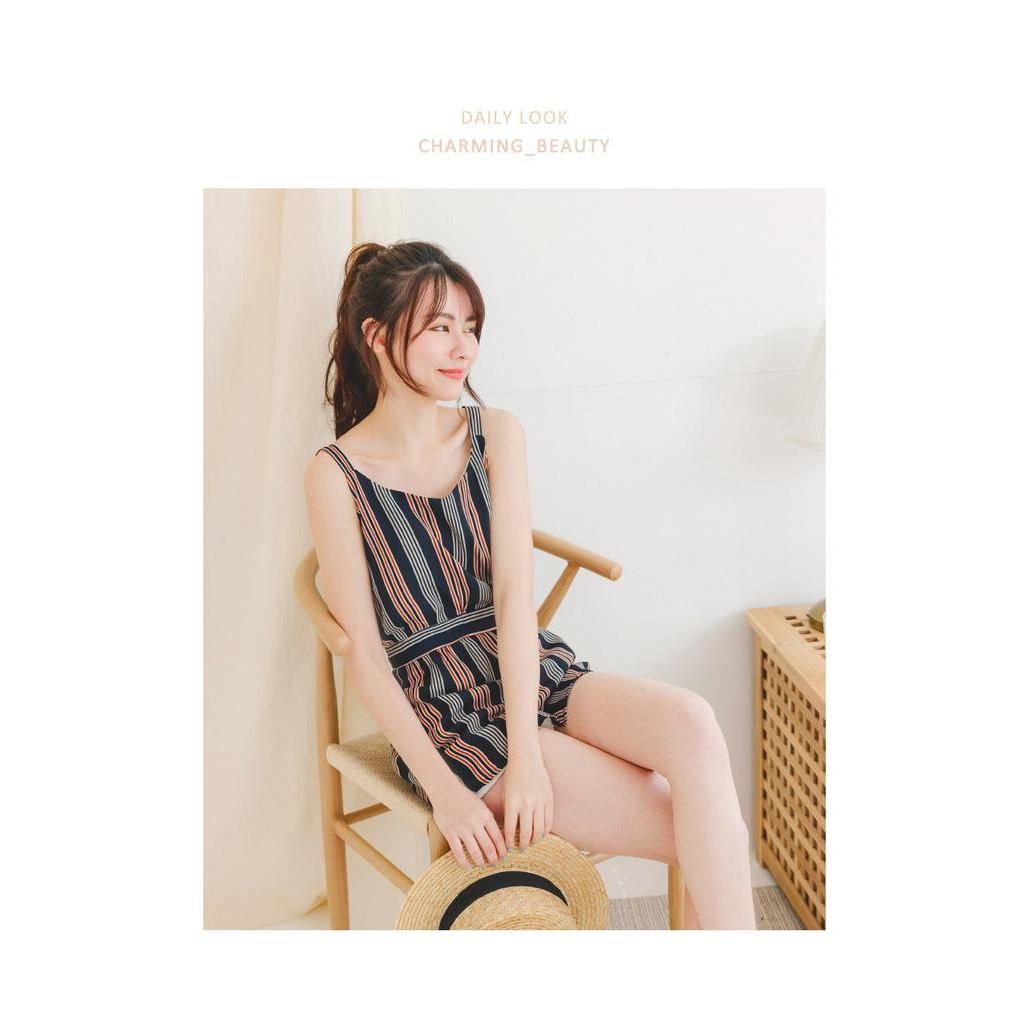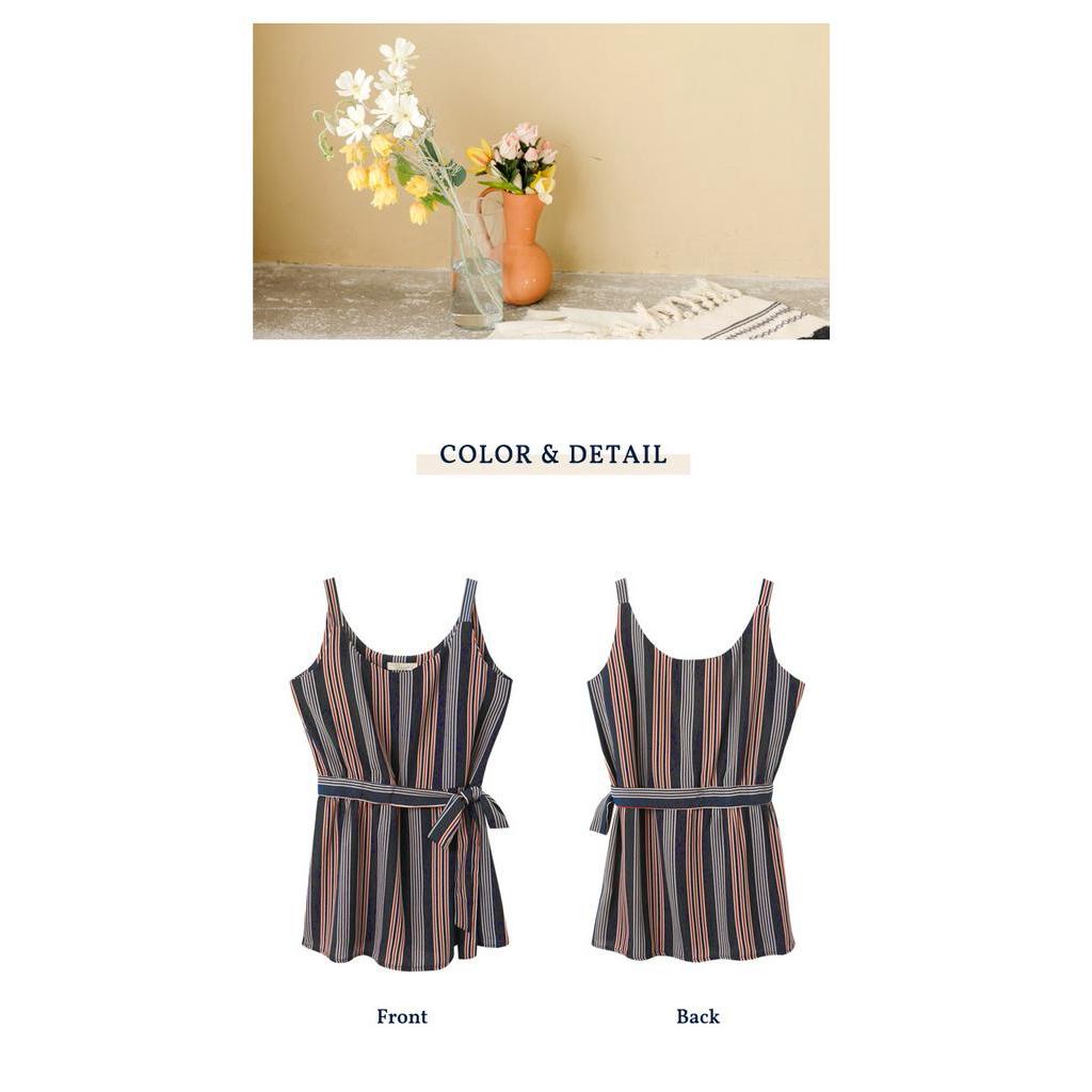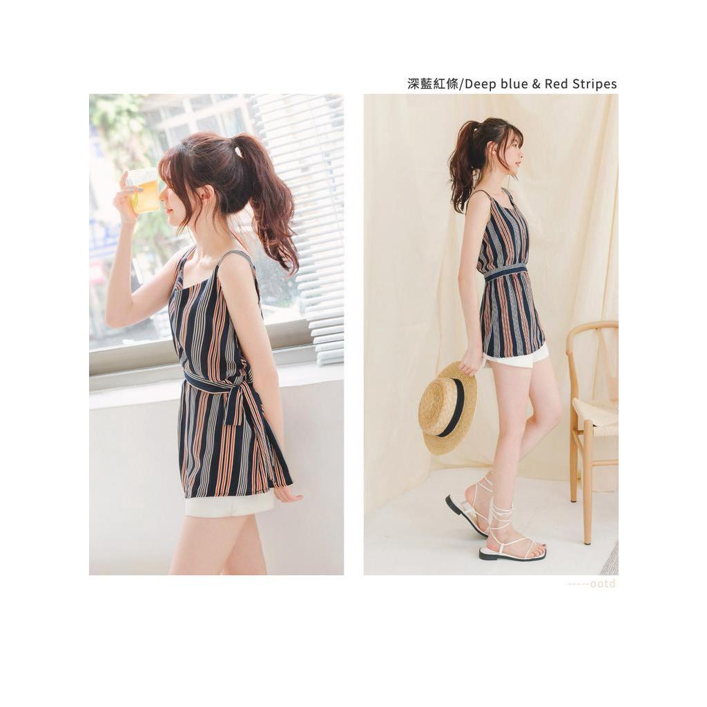 OB嚴選 撞色直紋收腰綁帶不易皺吊帶上衣 《AB15776》大尺碼/女裝/現貨