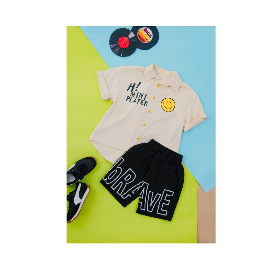 OB嚴選 純棉笑臉英文印圖寬鬆襯衫上衣 《QA1222》全館現貨童裝/現貨