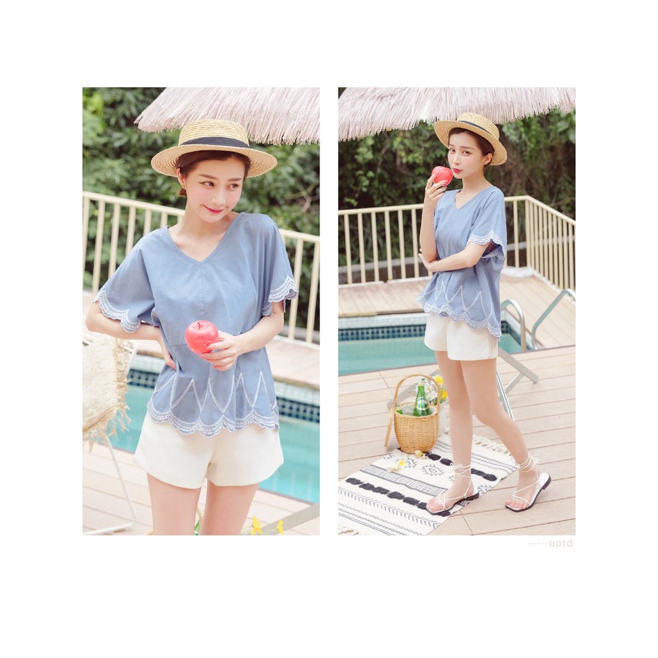 OB嚴選 高含棉.立體刺繡花邊V領上衣 《AB15958》大尺碼/女裝/現貨
