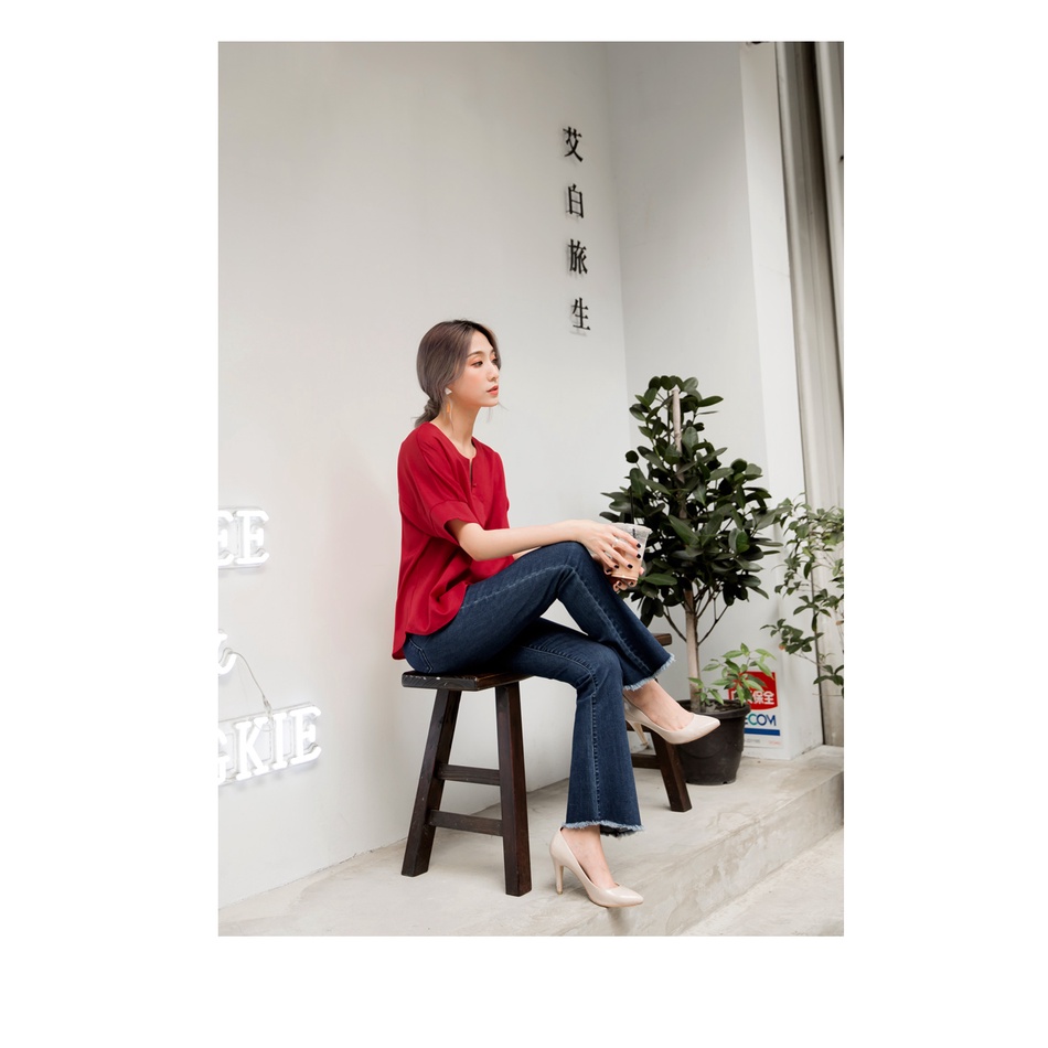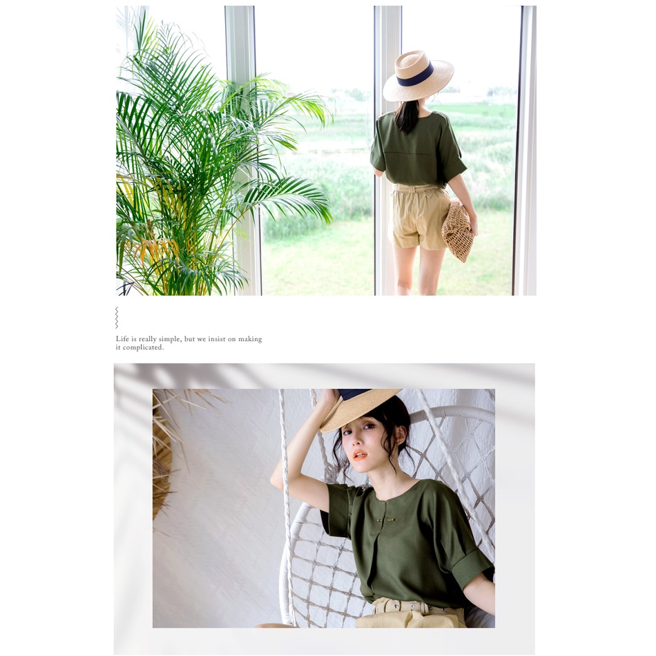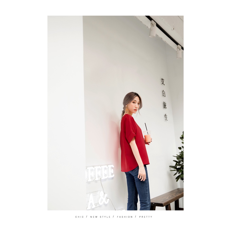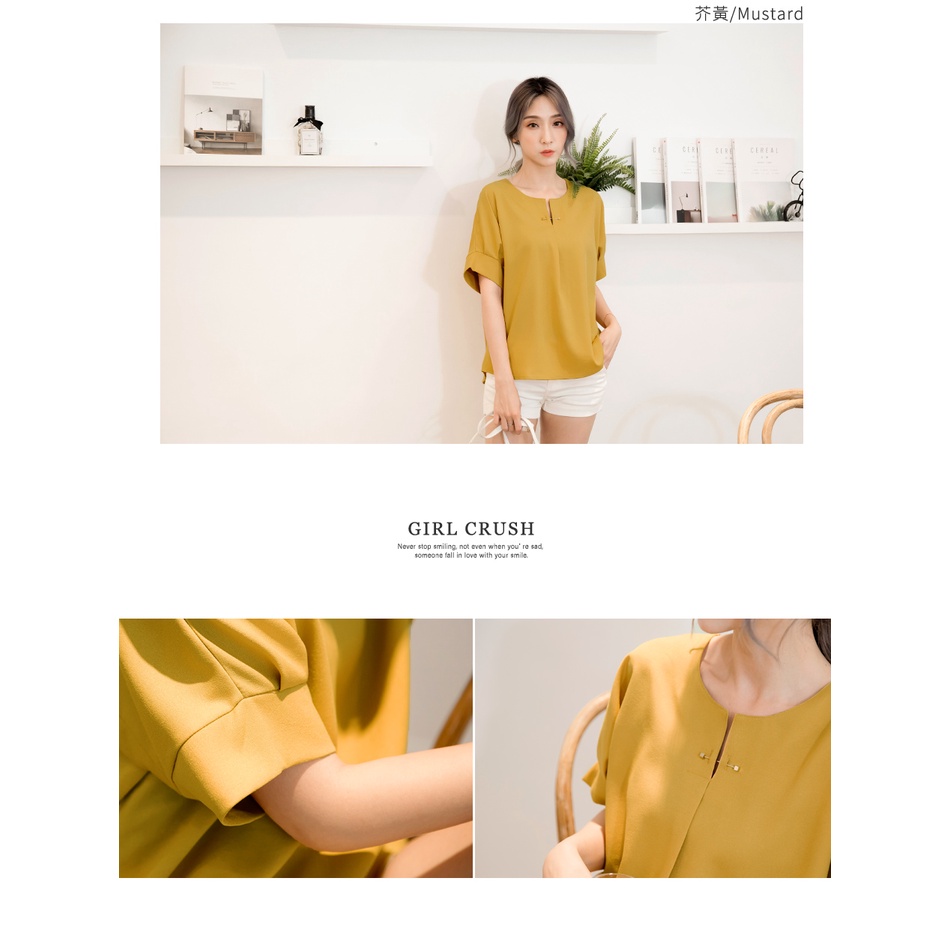 OB嚴選 不易皺V領金屬造型橫釦雪紡上衣 《AB9677》大尺碼/女裝/現貨