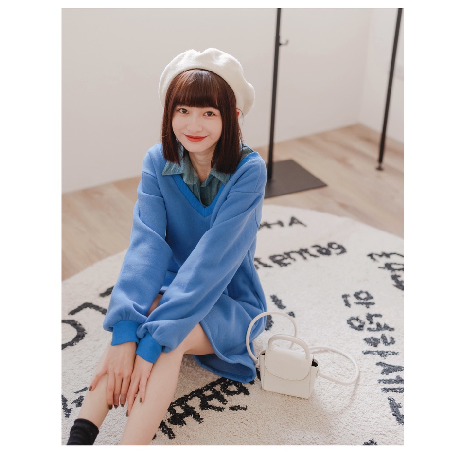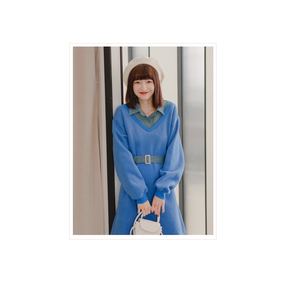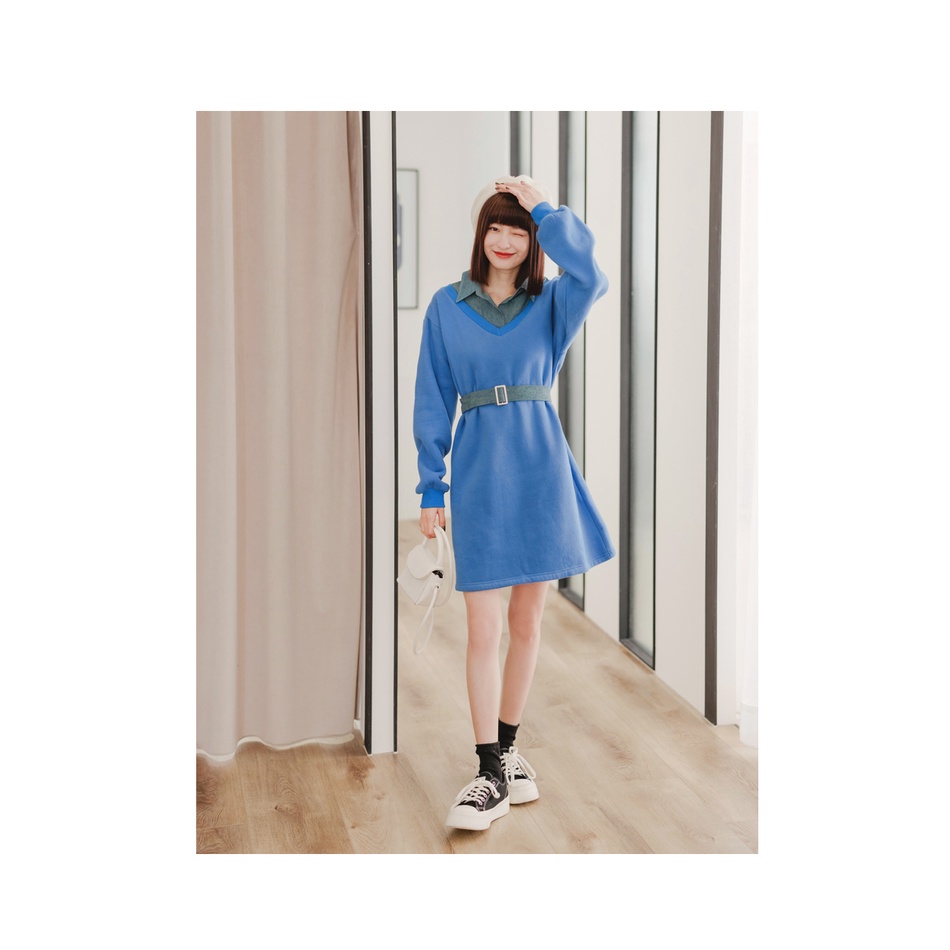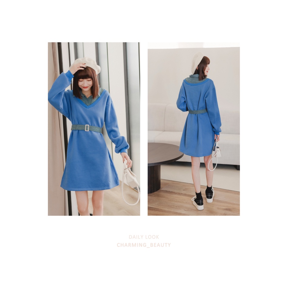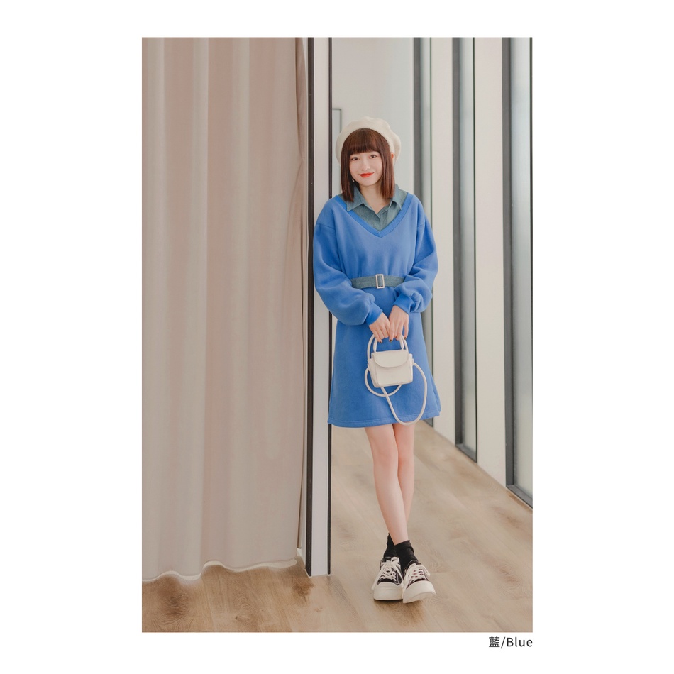 OB嚴選 假兩件.丹寧襯衫領拼接洋裝(附腰帶) 《DA8191》全館現貨大尺碼/女裝/現貨
