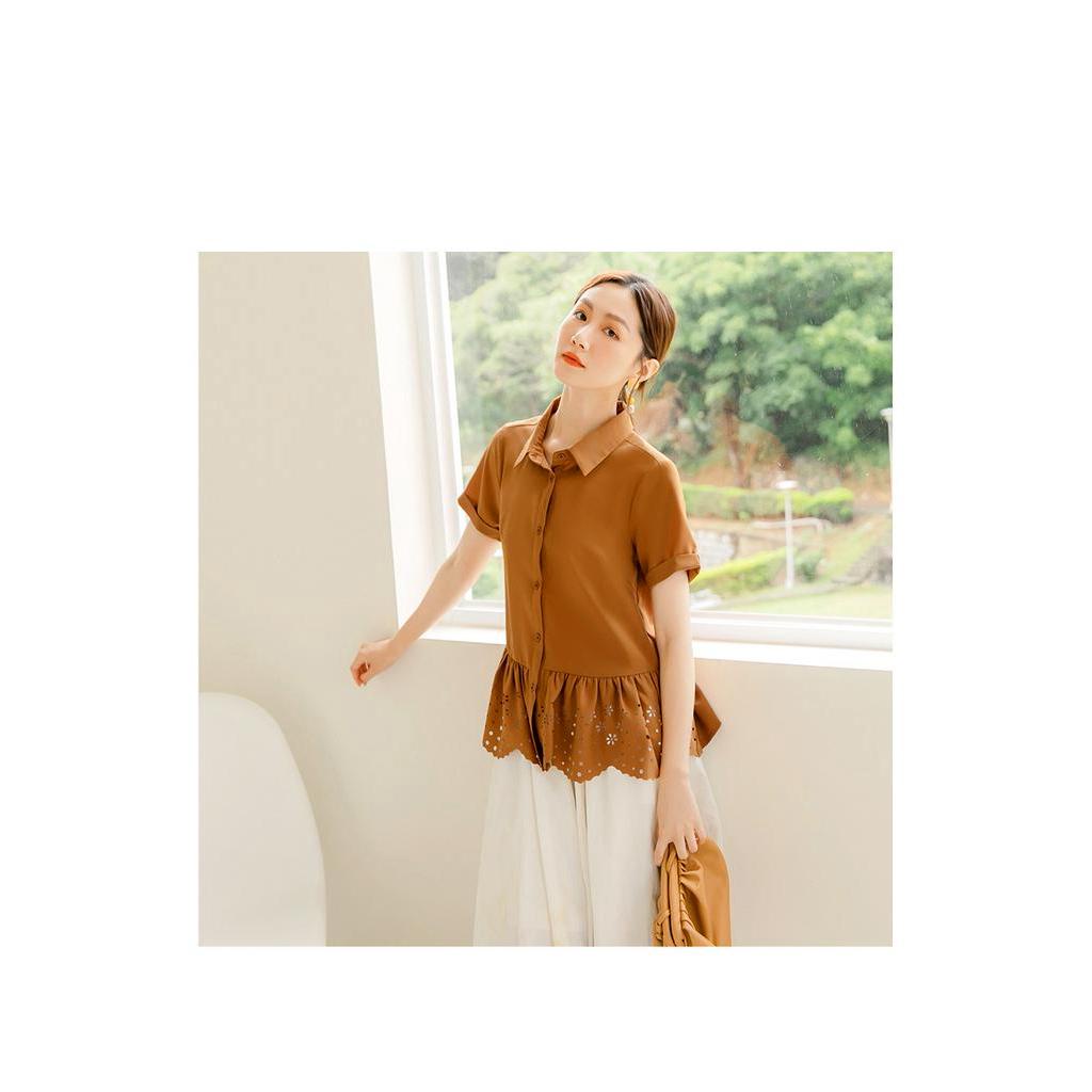 OB嚴選 優雅燒花不易皺短袖雪紡襯衫上衣 《AB15311》大尺碼/女裝/現貨