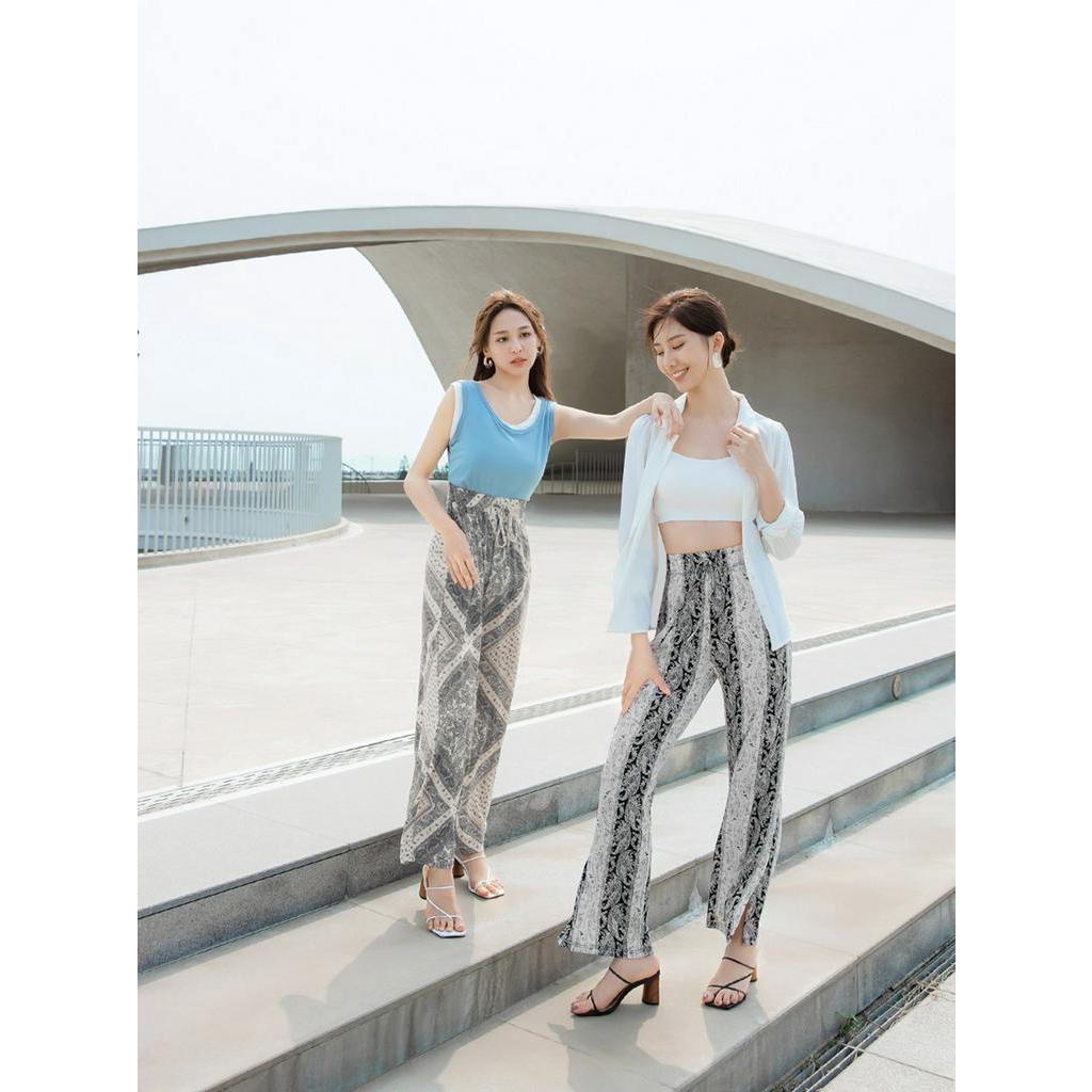 OB嚴選 涼感.冰箱空氣紗印花腰鬆緊寬褲 《BA6625》大尺碼/女裝/現貨