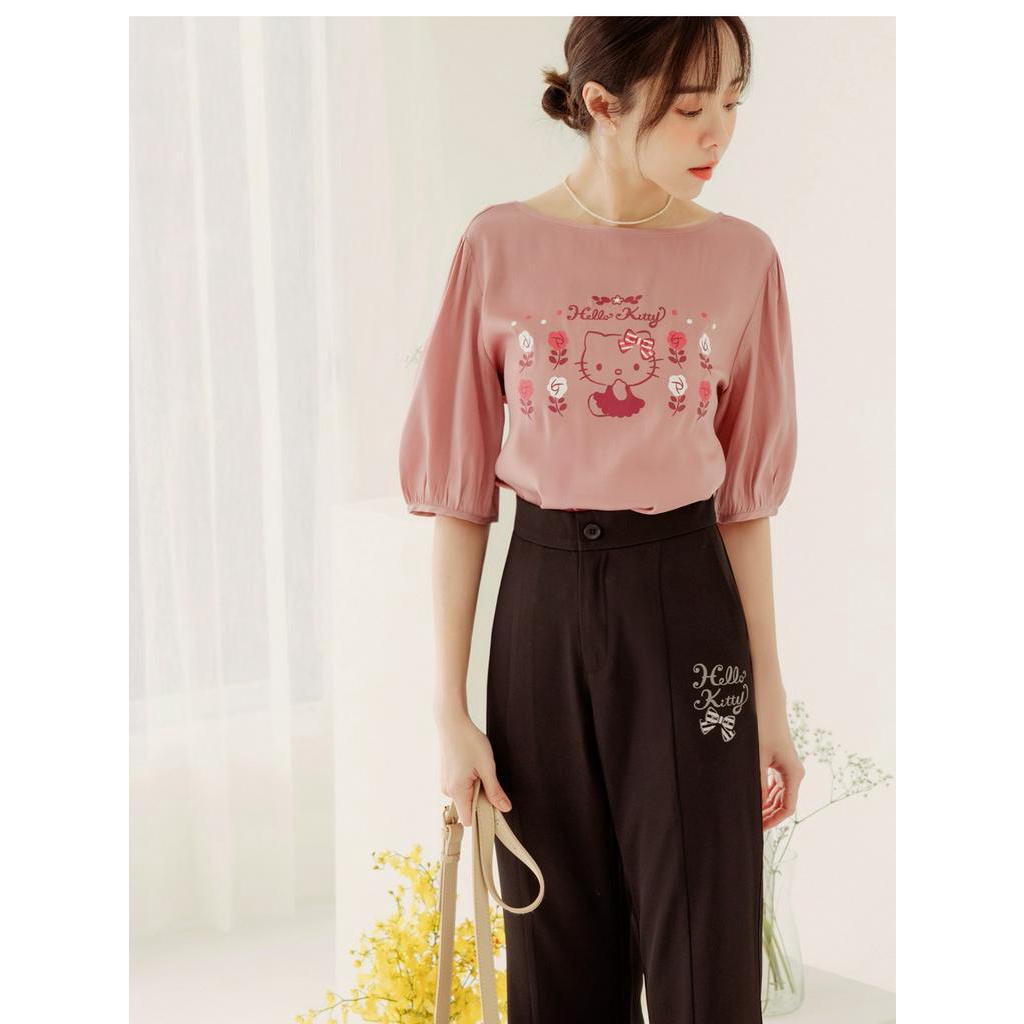 OB嚴選 KITTY花果茶系列.微性感V字露背抽繩綁帶泡袖上衣 《KB1321》大尺碼/女裝/現貨