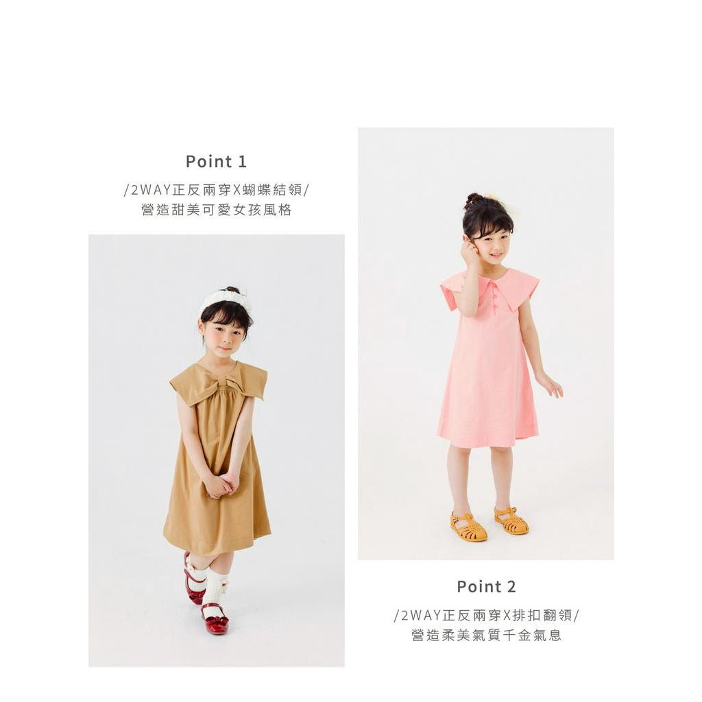 OB嚴選 純棉蝴蝶結翻領排釦正反兩穿洋裝 《QD0003》童裝/現貨