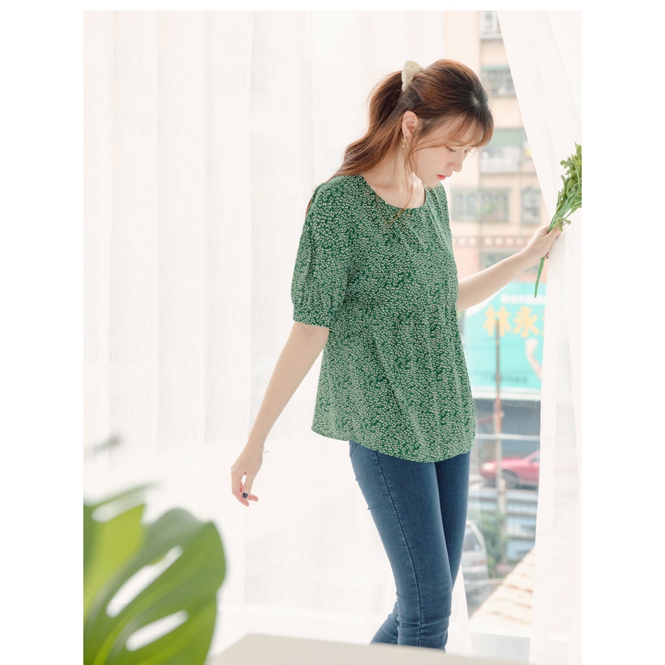 OB嚴選 清新不易皺碎花拋袖上衣 《AB17064》大尺碼/女裝/現貨