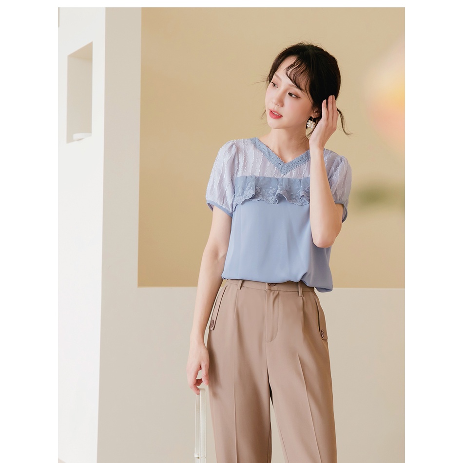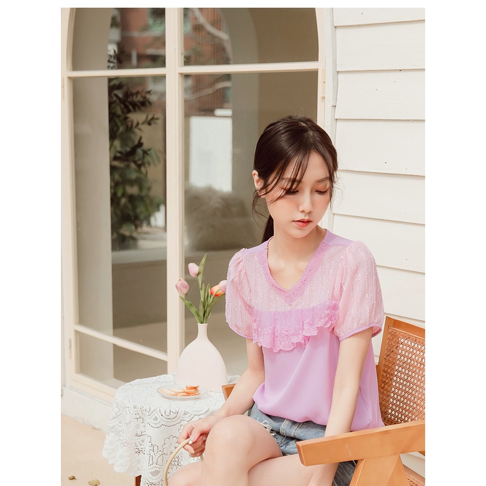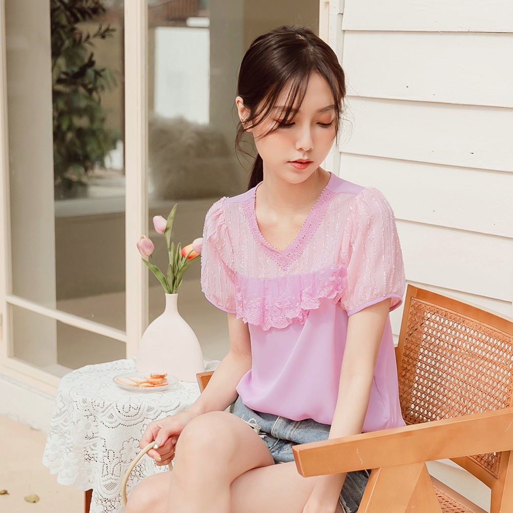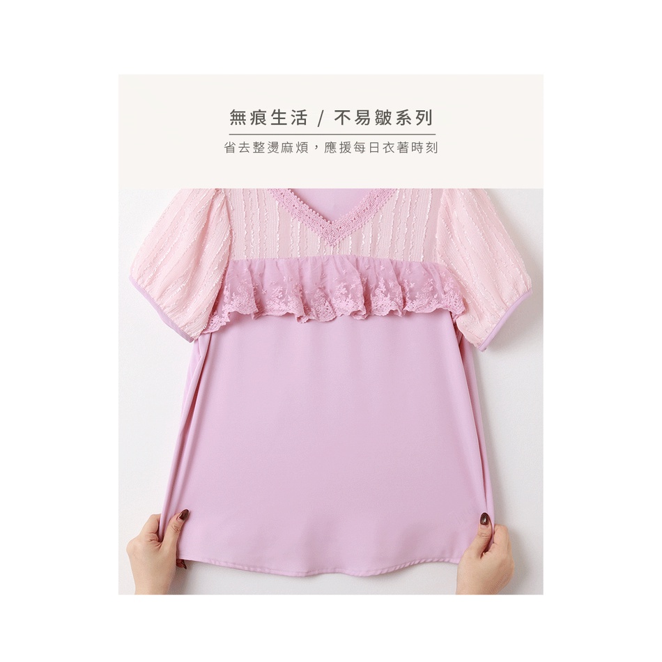 OB嚴選 清涼關係學.觸膚涼感蕾絲拼接拋袖上衣 《AB16883》大尺碼/女裝/現貨