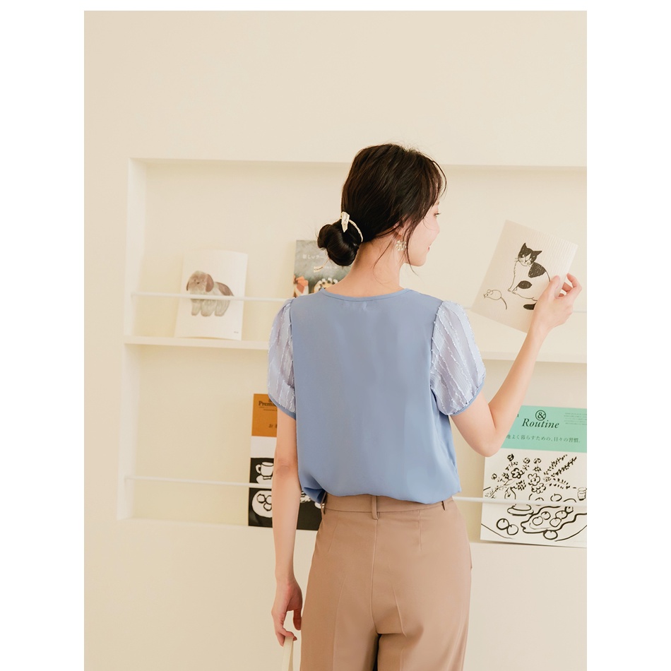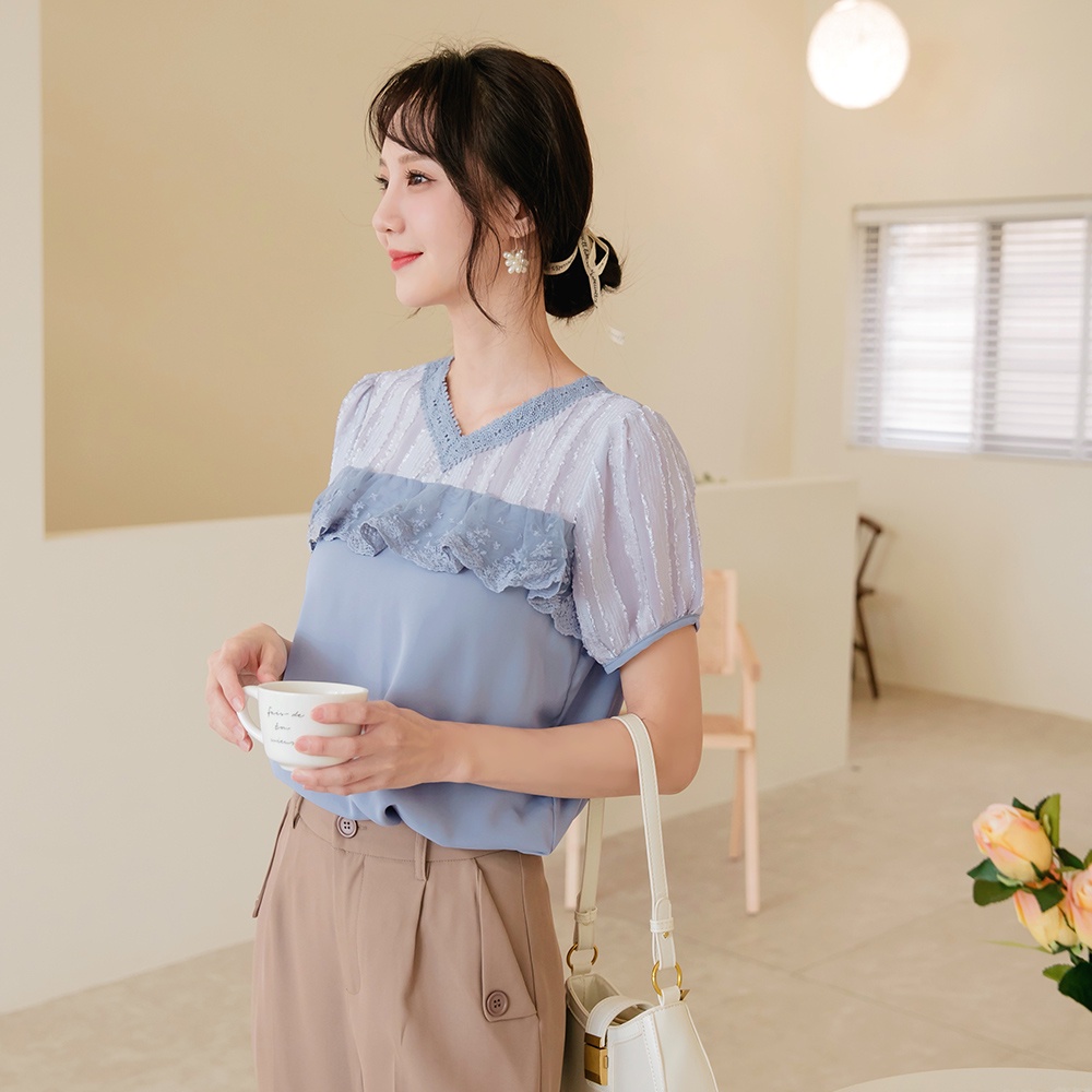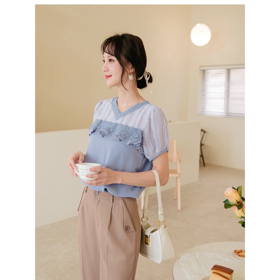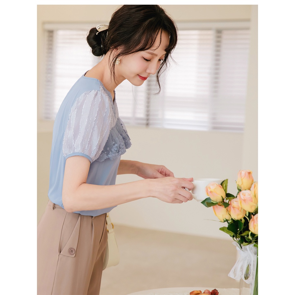 OB嚴選 清涼關係學.觸膚涼感蕾絲拼接拋袖上衣 《AB16883》大尺碼/女裝/現貨