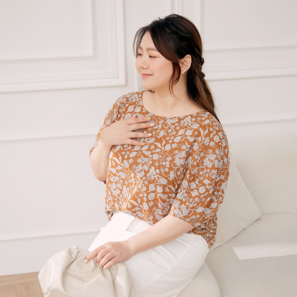 OB嚴選 雲朵自訂款-印花寬版落肩拋袖上衣 《AB18376》大尺碼/女裝/現貨