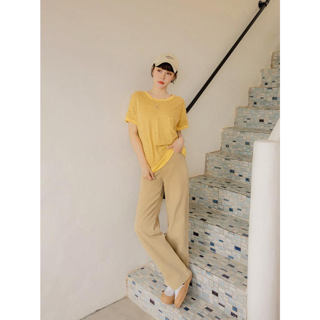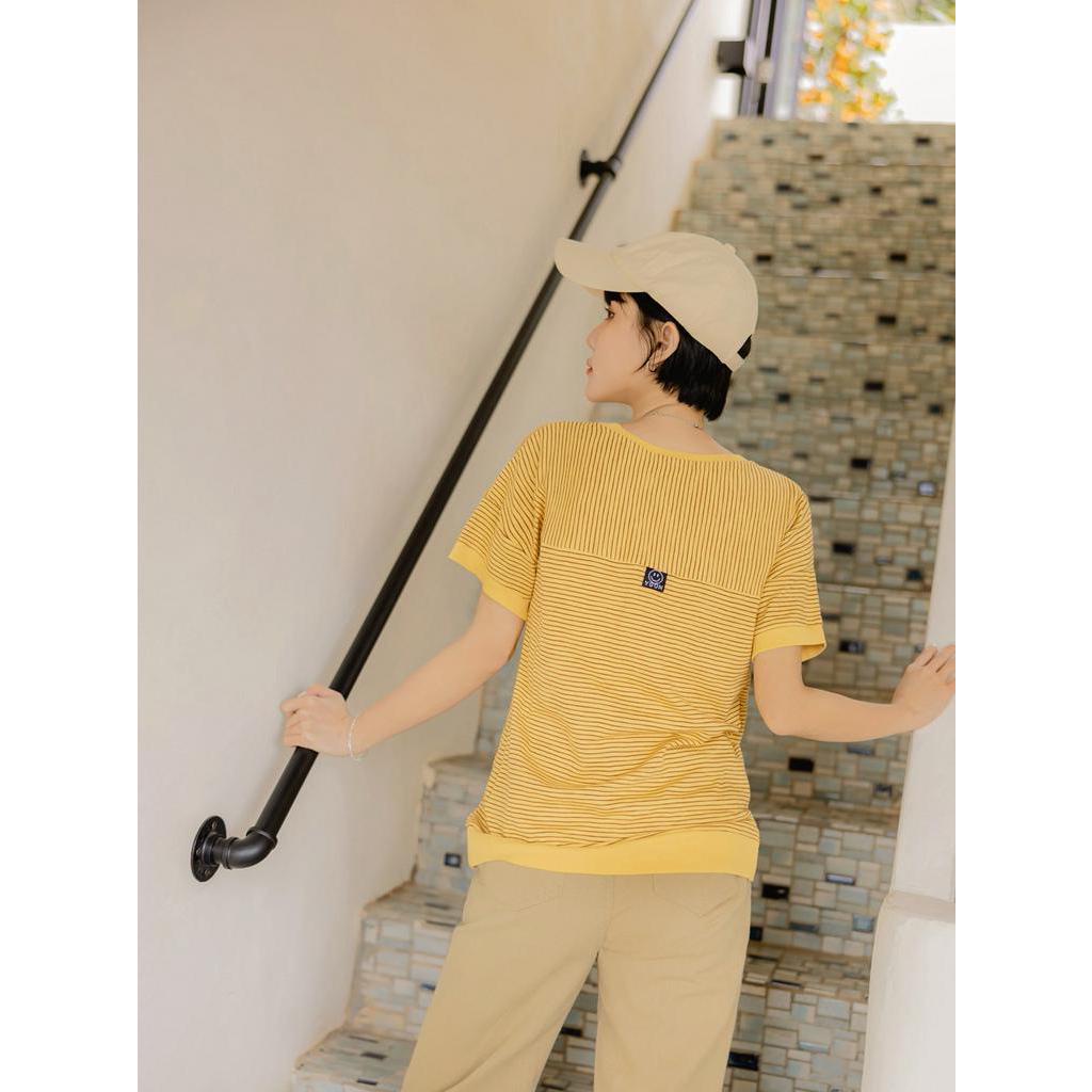 OB嚴選 棉質條紋後背織標短袖上衣 《AB18430》大尺碼/女裝/現貨