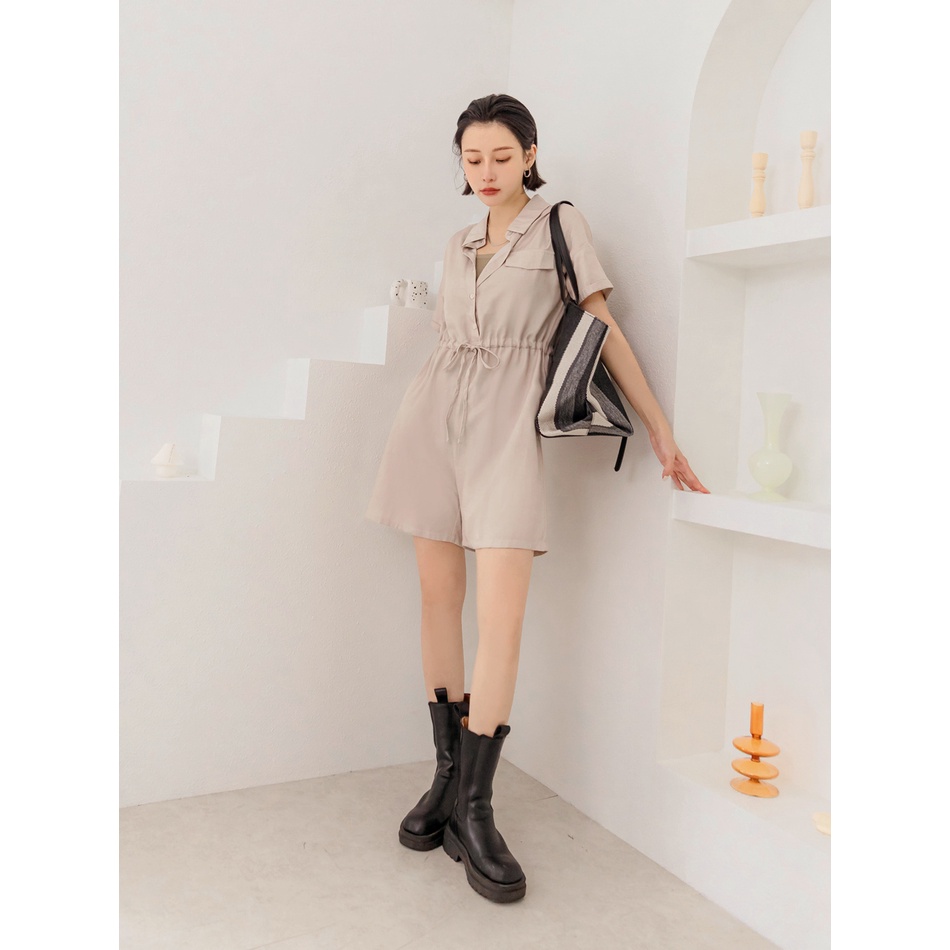 OB嚴選 懶人必備!觸膚涼感翻領綁帶收腰連身褲 《BA6814》大尺碼/女裝/現貨