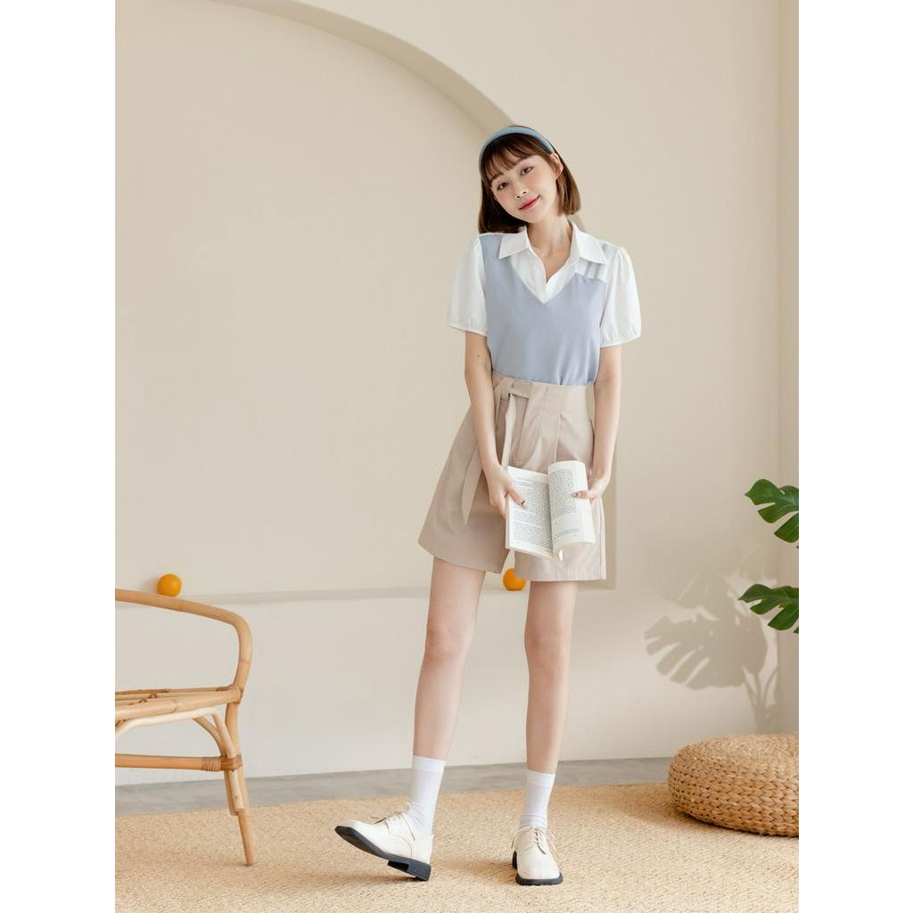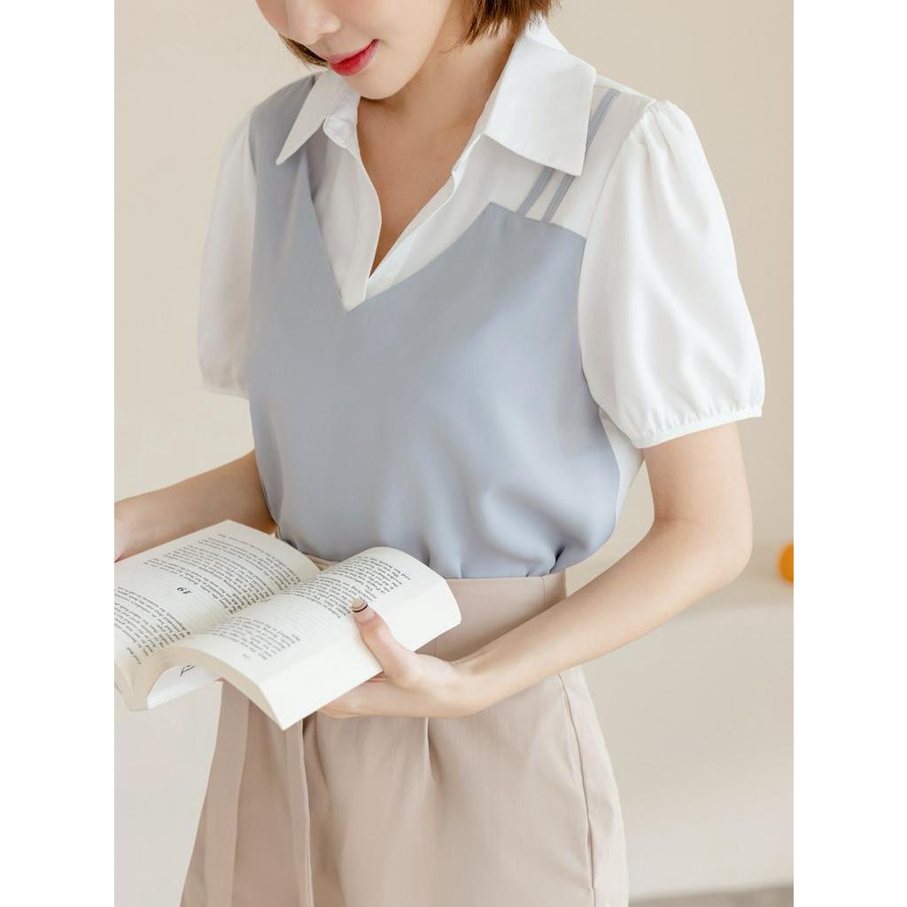 OB嚴選 假兩件襯衫領拋袖上衣 《AB18483》大尺碼/女裝/現貨