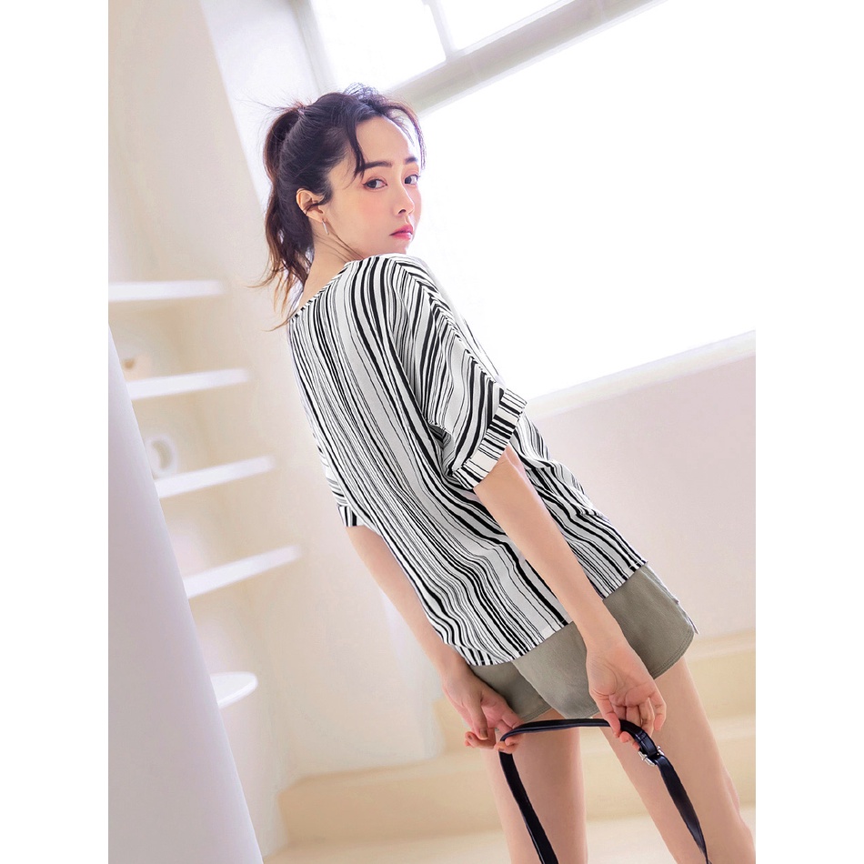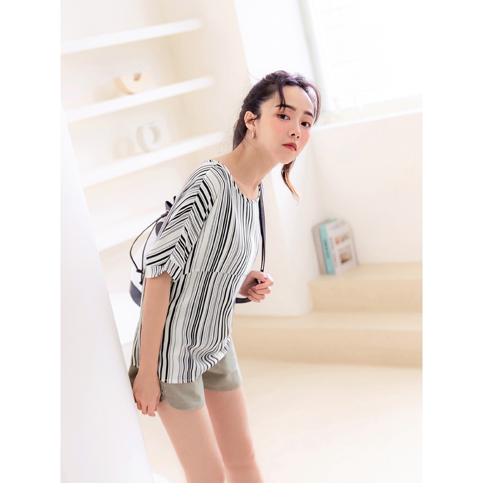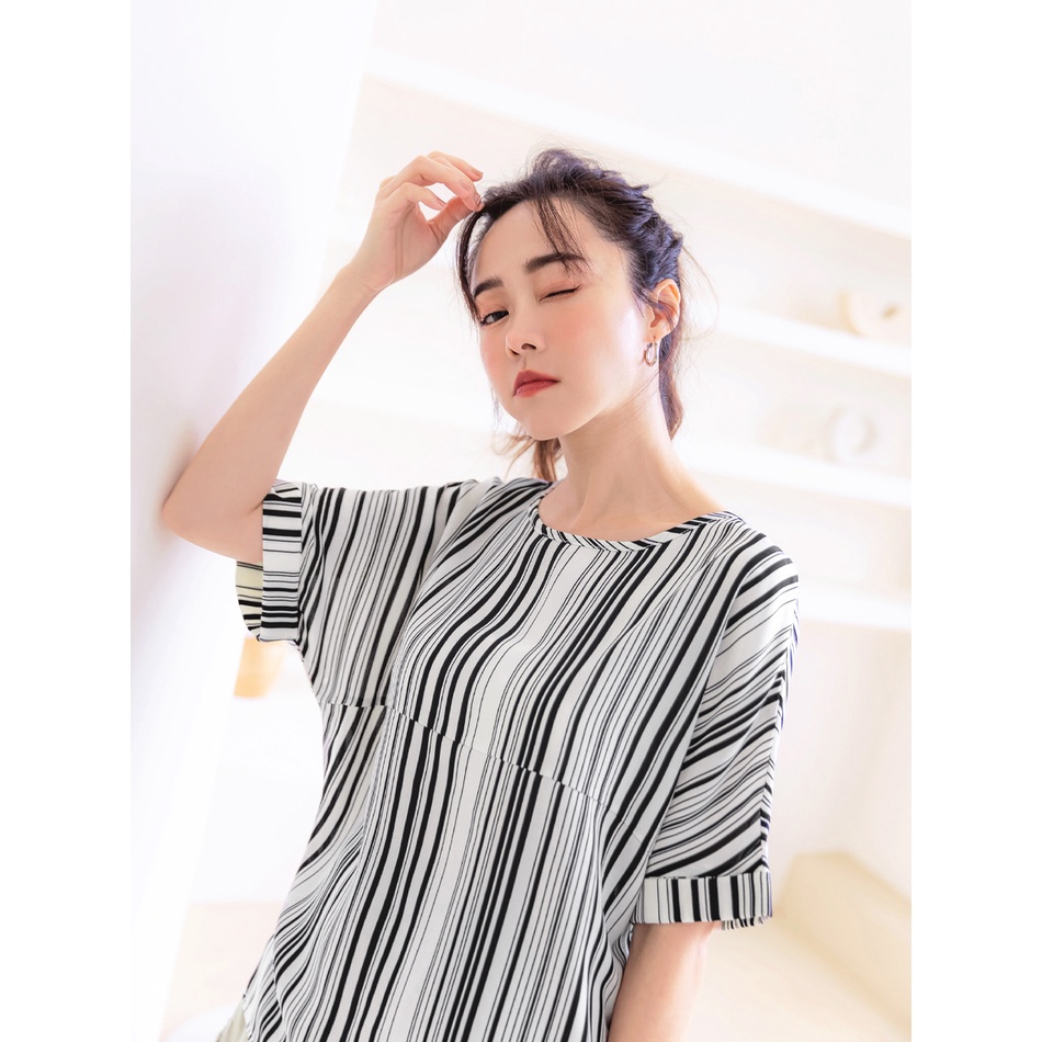 OB嚴選 寬鬆不對稱拼接直條紋寬袖上衣 《AB17034》大尺碼/女裝/現貨