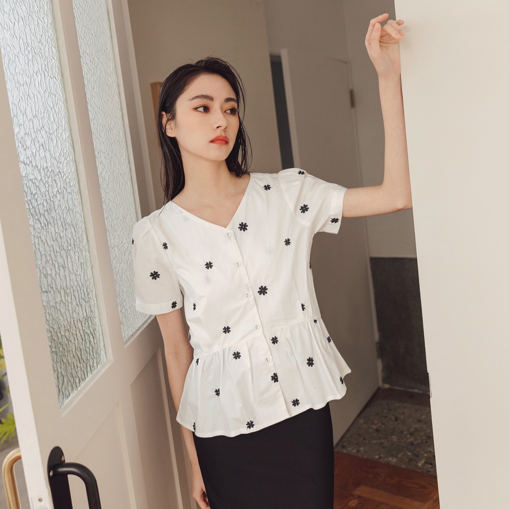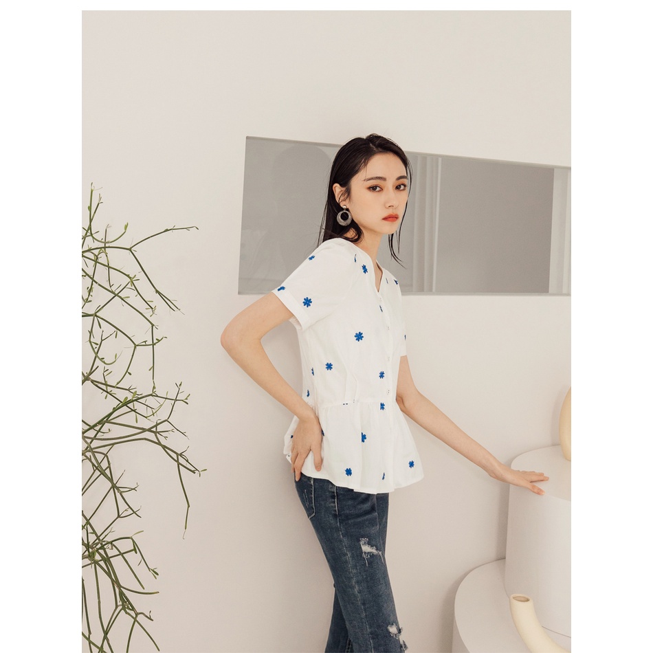 OB嚴選 小V臉.棉質立體刺繡傘襬上衣 《AB16939》大尺碼/女裝/現貨