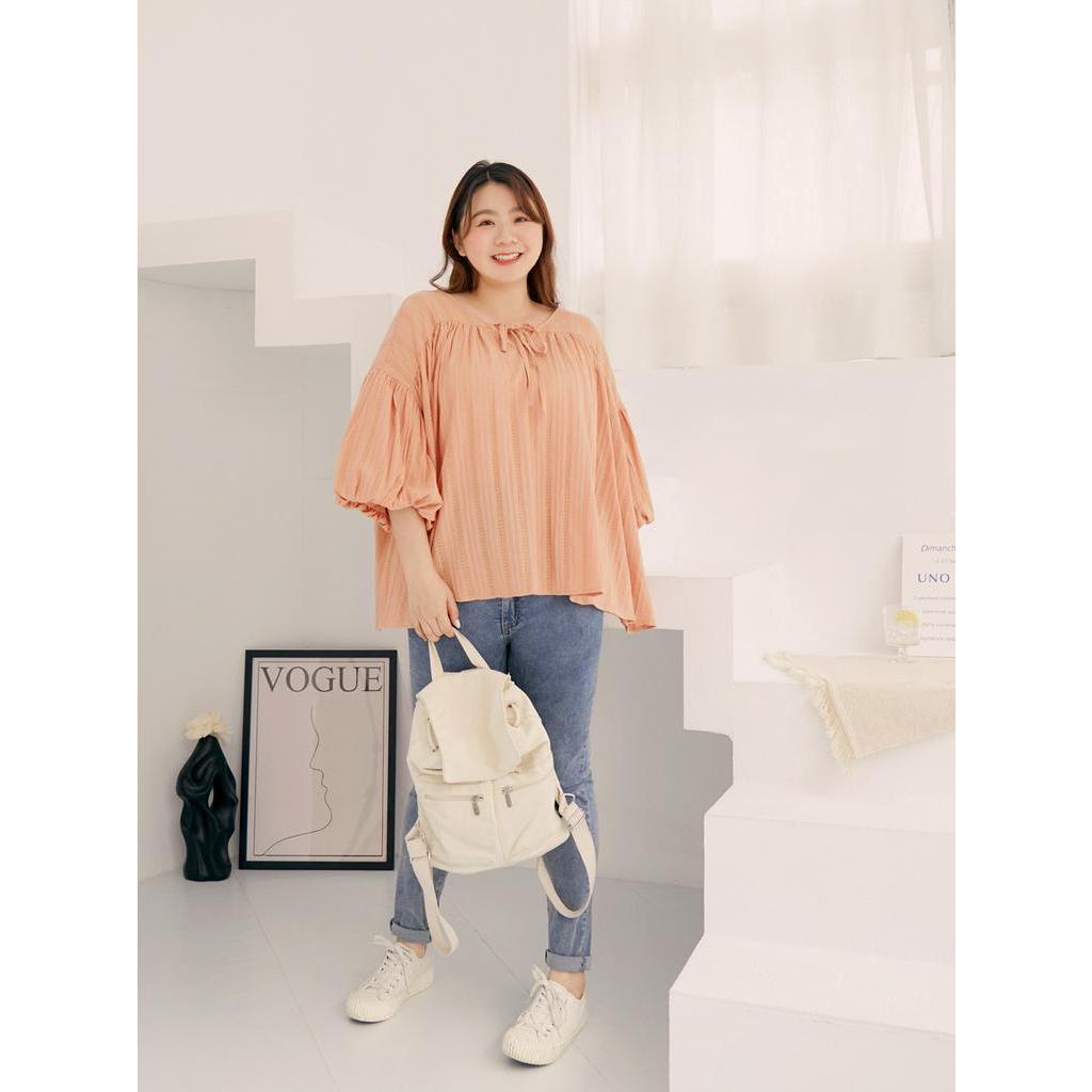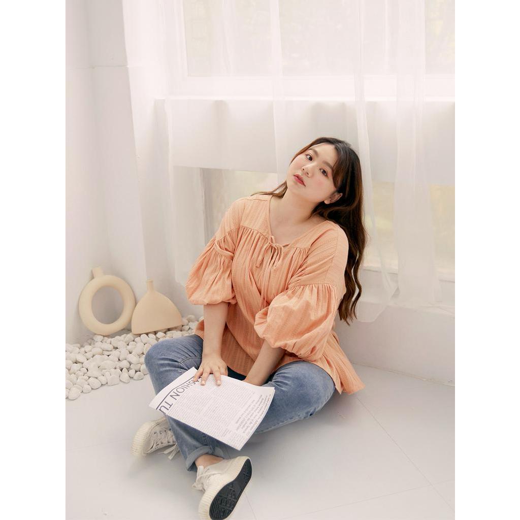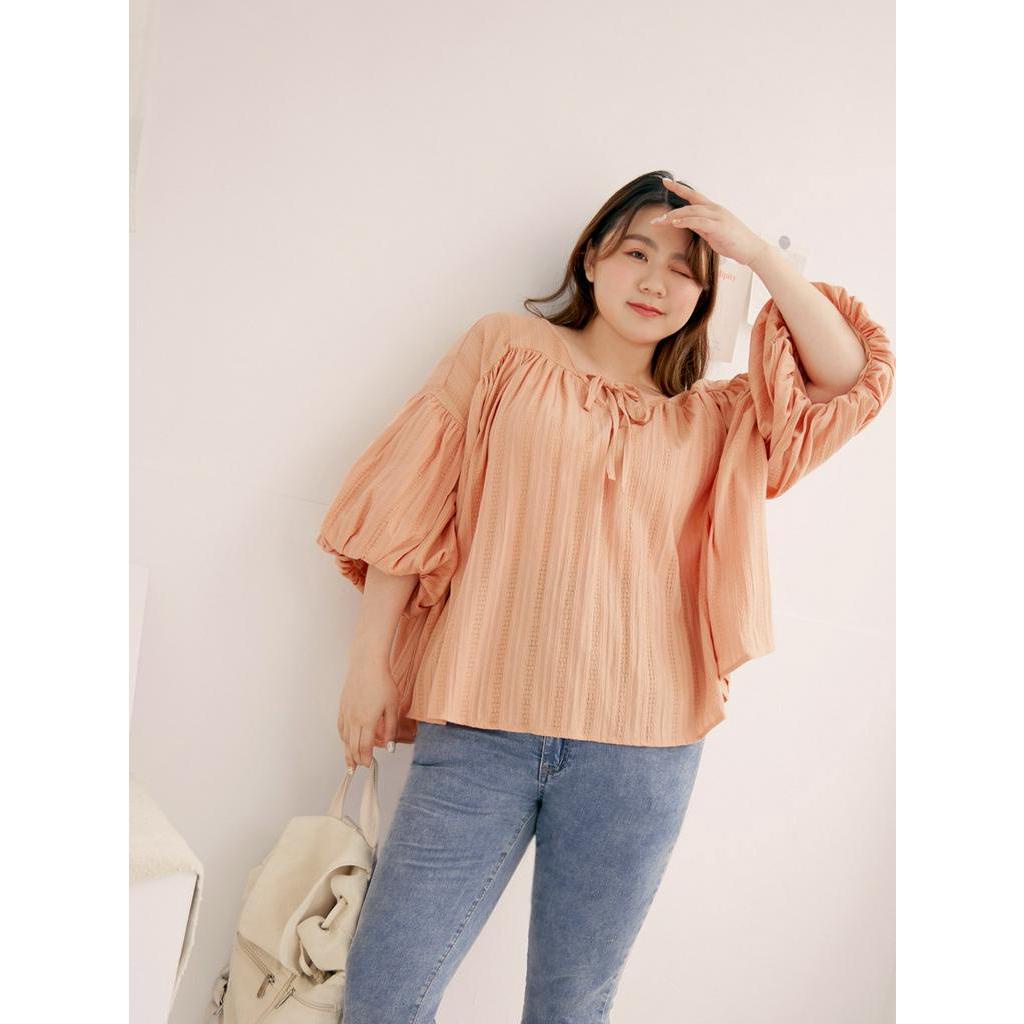 OB嚴選 雲朵自訂款-緹花綁帶泡泡袖傘襬上衣 《AB18249》大尺碼/女裝/現貨