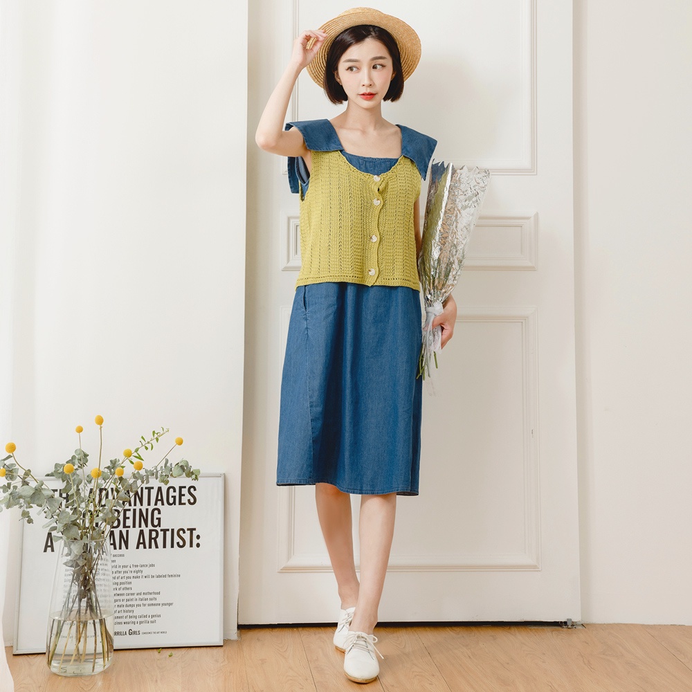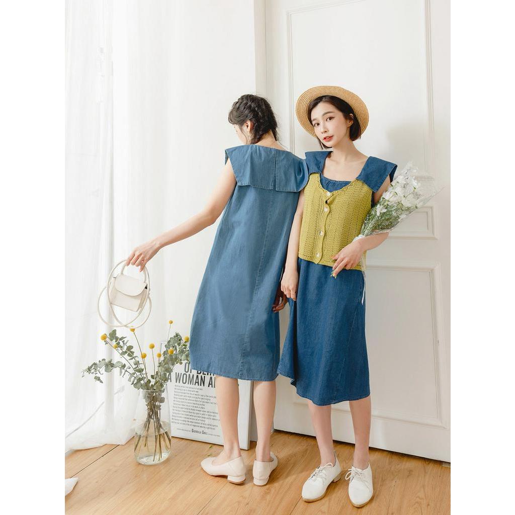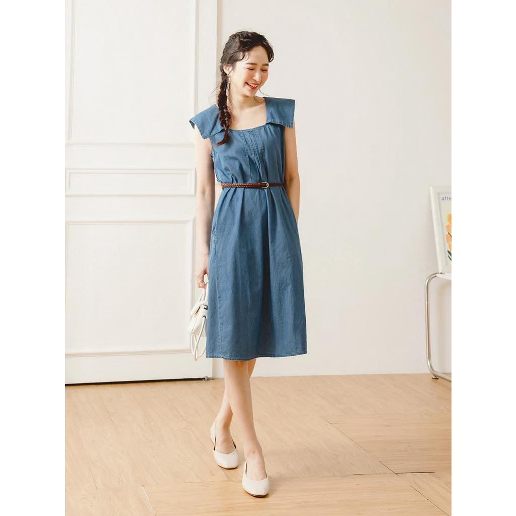 OB嚴選 小V臉.方領高含棉造型領片車褶線牛仔洋裝 《DA9298》大尺碼/女裝/現貨