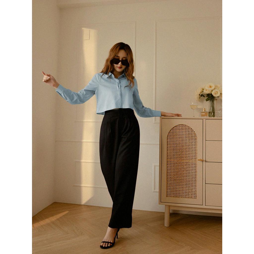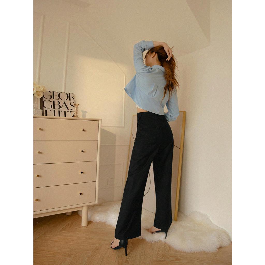 OB嚴選 翻邊褲頭打褶高腰落地直筒長褲 《BA7038》女裝/現貨/時髦